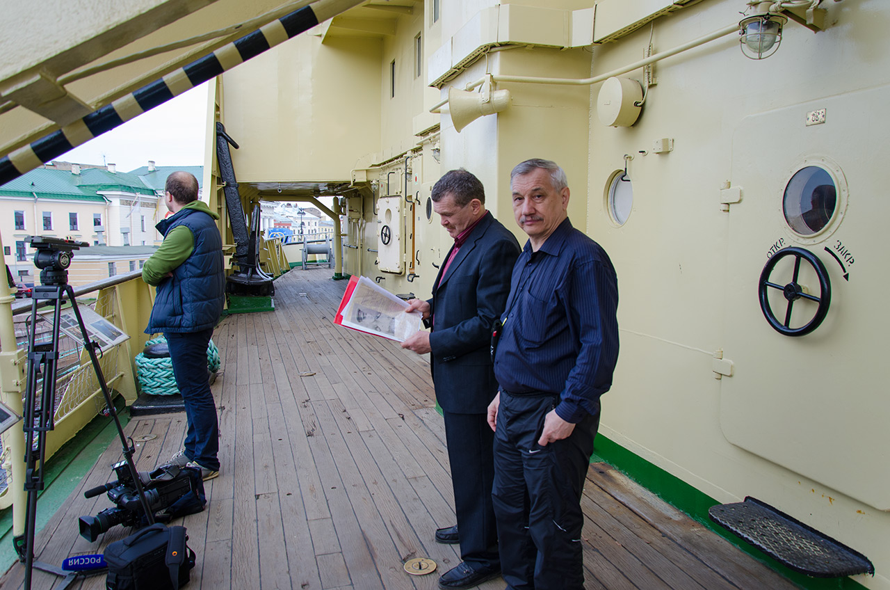 Сегодня на ледоколе "Красин" мы сняли сюжет для новостной воскресной программы канала "Россия-1 Петербург". В сюжете Михаил RA1ALA работает позывным RP70LK с бортовой мемориальной станции ледокола с другими мемориальными станциями "Победа-70". Сюжет выйдет в итоговой программе, в воскресение 10 мая. До нас побывала съёмочная группа "5 канала", но когда там выйдет сюжет - я запамятовал. Вроде завтра, а в какой программе - не помню... Можно уточнить у Николая RV1AQ. Вложение: