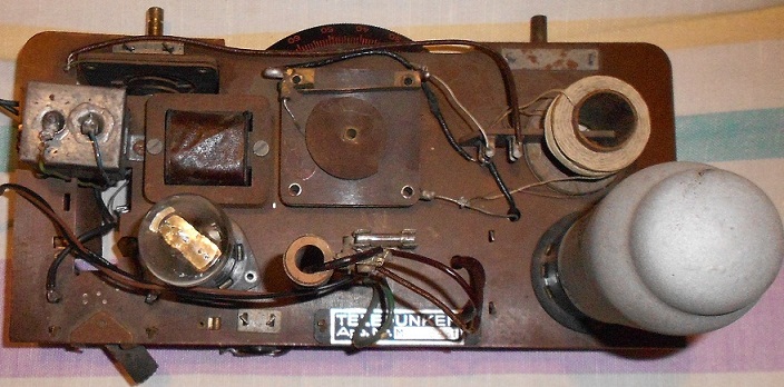 Нет, конечно, не сумрачный гений, а просто Гений. Это, видимо, народный приемник. В интернет, что переслал инфо мне Олег Михайлович, встречается такое название этой модели. Прост в обслуживании, надежен, недорог, доступен массовому слушателю. Страна готовилась к войне со всем Миром. Народ хотел слышать своего Фюрера. Конечно, разумно, видимо, экономили на всем. Тогда все только в мировом радиостроении начиналось. Да регенератор. По исполнению пластмассового корпуса приемник мог стоять и на столе и располагаться на стене жилища. Но поражает исполнение и технология изготовления всех комплектующих приемника в те уже годы в рейхе. Это же была целая сеть различных военных заводов и фирм с диапазоном возможностей от лакокраски - химии -литья пластмассы и металла -штамповки - протяжки медного обмоточного провода -штучной ручной сборки радиокомпонентов - до конечной сборки Telefunken DKE38. А вспомните чем жила наша страна в том же 1938 году. До радио ли было нам тогда, когда за каждым углом мерещились шпионы и вражеские агенты!. Ни с кого в этой модели приемника не "слизано". Применяли немцы свои разработки и очень качественно по немецки их выполняли. Каркас динамика, к примеру, из материала похожего на современный гетинакс. Интересна механика шарнирного механизма изменения расстояния и угла наклона одной катушки по отношению к другой для регулировки, видимо, уровня обратной связи , а стало быть и амплитуды генерации регенератора. Исполнение переменного конденсатора с твердым диэлектриком вызывает так же большое уважение. Хорошо знаком с радиоприемниками СССР первых послевоенных лет, в которых очень многие узлы взяты целиком были из разработок фирм США, Франции, Германии, а то и целиком менялся только дизайн и корпус, а вся внутренняя начинка исполнялась словно под копирку. Но название модели ставили, конечно, наше. В этой же модели все свое и отличного, как всегда и во всем, высшего немецкого качества ...