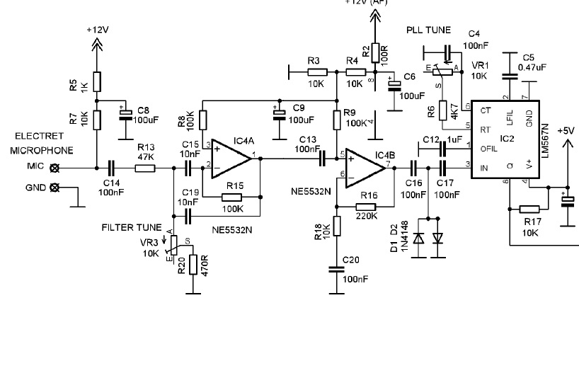RL1L писал(а): Вот схемка шикарного ТЛГ фильтра. Собрал фильтр + АРУ на LM386, вместо биполярного транзистора поставил полевой с изолированным затвором 2N7000. Связочка получилась действительно шикарная - легко отстраивается от "шума раковины" на SDR (в режиме узкополосной CW).