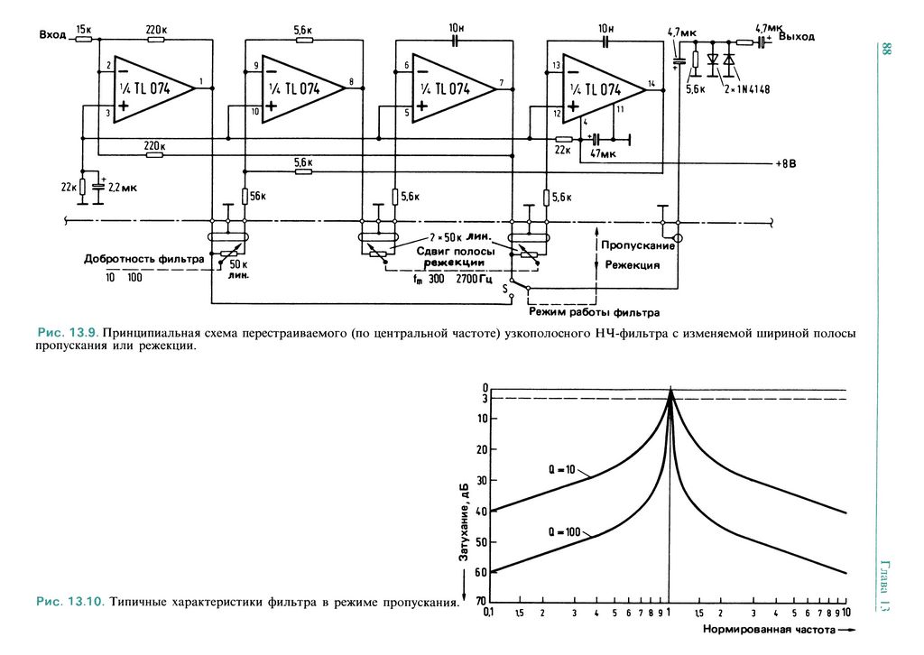 RL1L писал(а): Вот схемка шикарного ТЛГ фильтра. Обкатал в МС9, единственное изменение - это заменил входной резистор на 220 кОм вместо 15, привел к почти единице коэффициента передачи на резонансе.