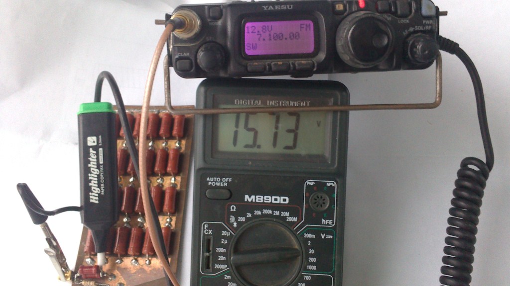 А то вот сделал эквивалент антенны, и как советовали в какой-то книге: параллельно эквиваленту подключают резисторный делитель 1:10 к нему диод, токоограничивающий резистор и блокировочный кондёр на землю. Ну т.е. простой детектор ВЧ напряжения. Ну дак откалибровать нечем... да и в зависимости от частоты у него показания разные.... откалибрую на 3,5 мГц... на 14 мГц уже меньше показания, а про 28 мГц и вообще разговора нет!