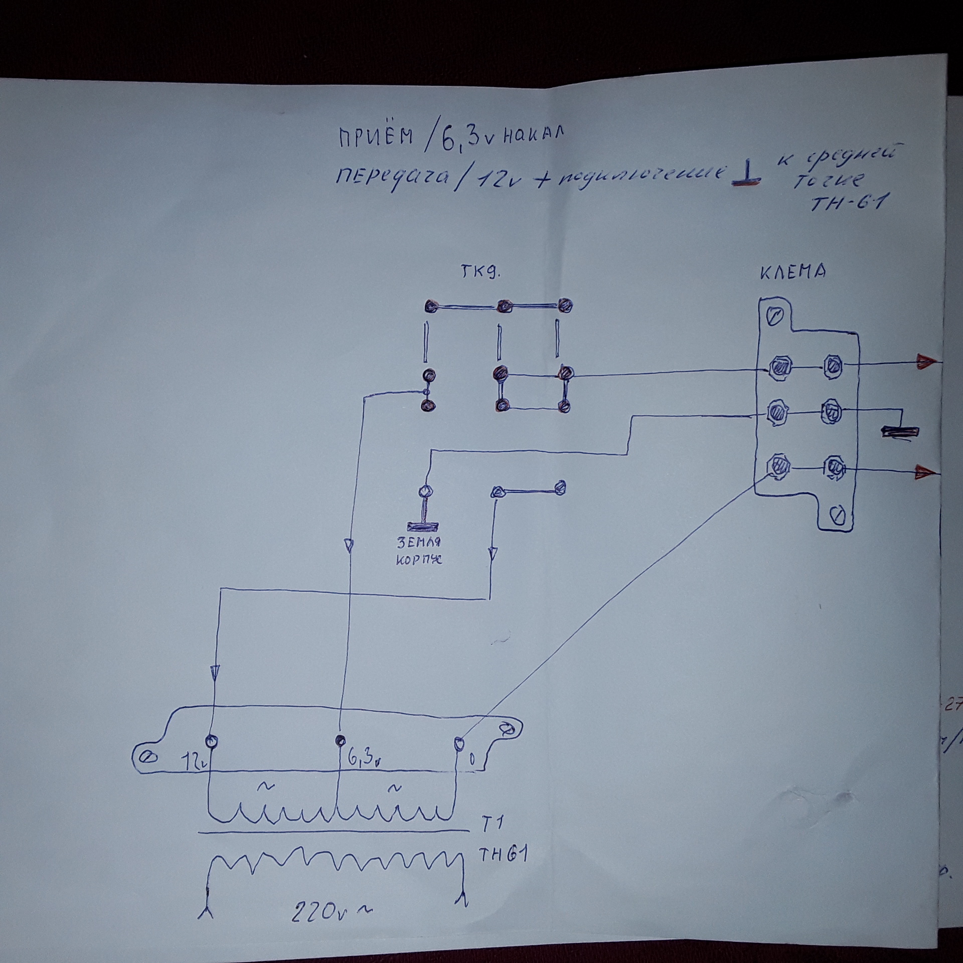 Вот схемы. РА (усилитель) и схема эконом режима 6 вольт (накала) приём, с переходом на 12 вольт передача и подключением земли на среднюю ножку накальника ТН 61. С уважением Владимир