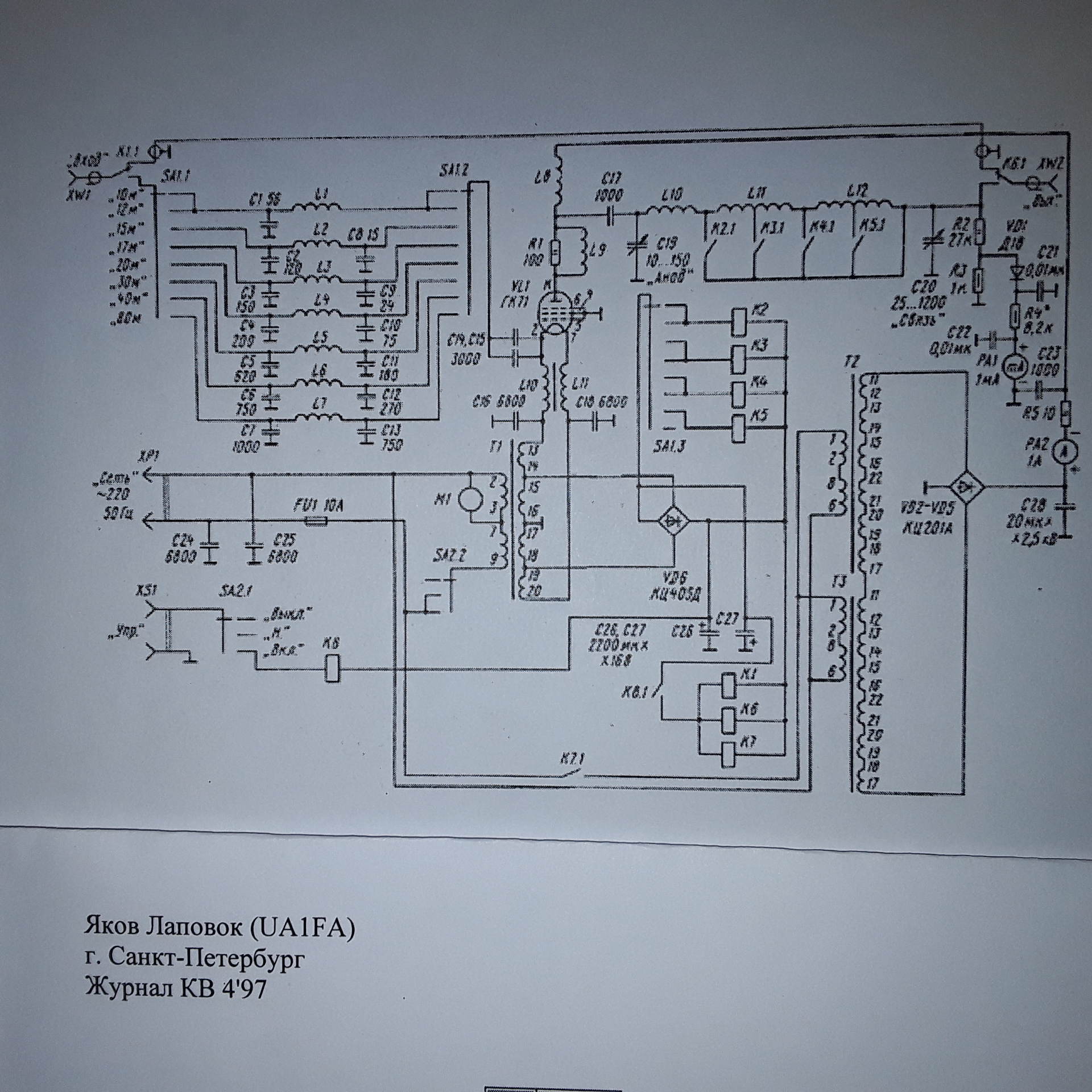 Вот по этой схеме я сбирал РА четыре раза. Схема на ГК 71 по схеме Якова Семёновича. Все работали на 28 мгц. Точно по ней и эта сборка РА, только на ГУ 81 М. БП высокого по этой схеме, он работал во всех вариантах. А вот, что сейчас происходит не понимаю. Я взялся думал дорос да ГУ 81М, а вот оказывается нет.