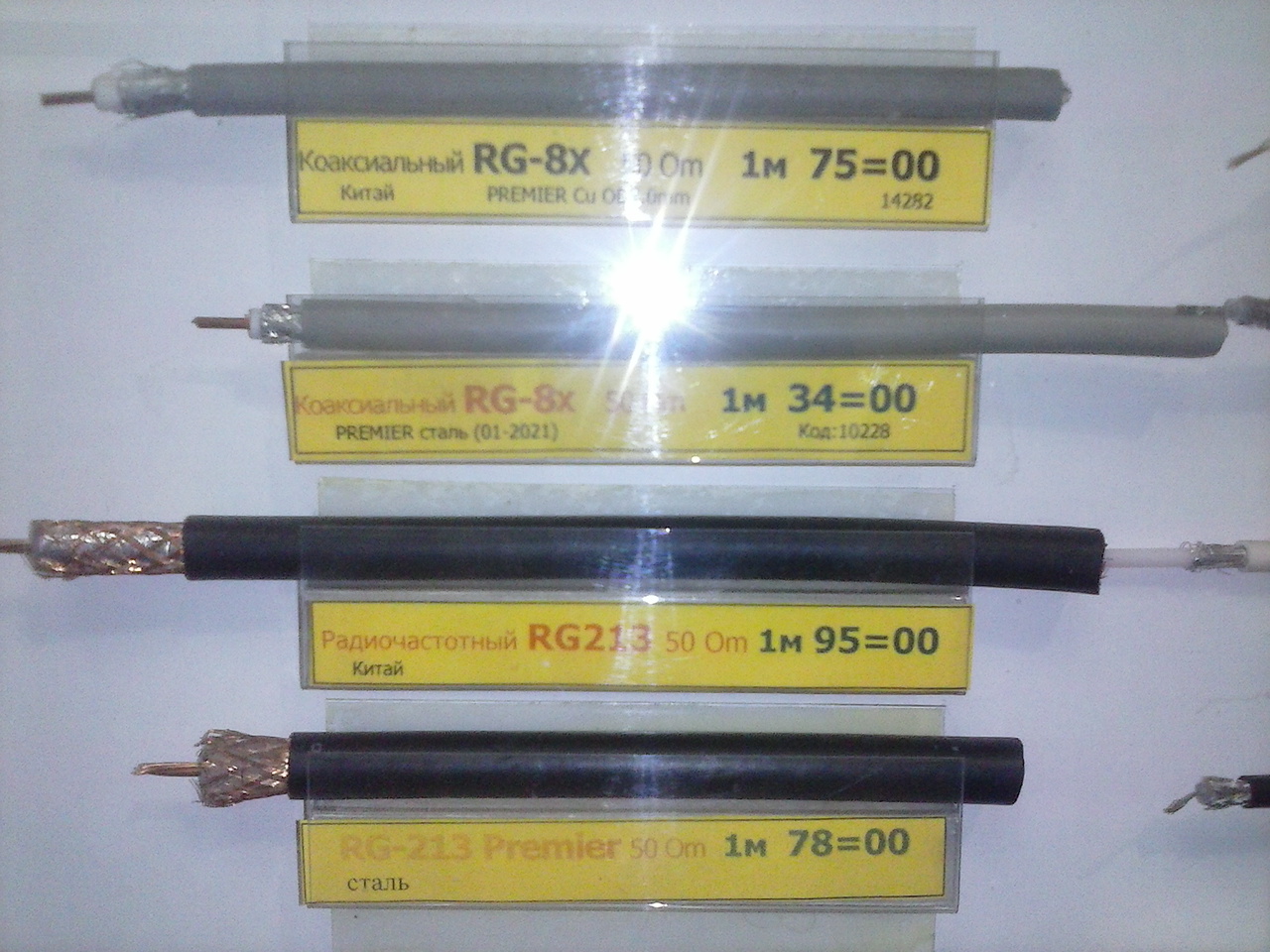 Всем добрый день! Решил заняться модернизацией КВ антенн, и понадобился коаксиальный кабель. Запасы старого доброго РК-50 закончились. Зашел в магазин (радиодетали на Пионерской) там продается вот такой кабель (см. картинки). Или подскажите где купить нормальный РК-50, так как после истории RA1AIE http://ra1aie.livejournal.com/126454.html я теперь и не знаю, что делать. Кабель для КВ 3.5-30 МГц, мощность 100...400 Вт.