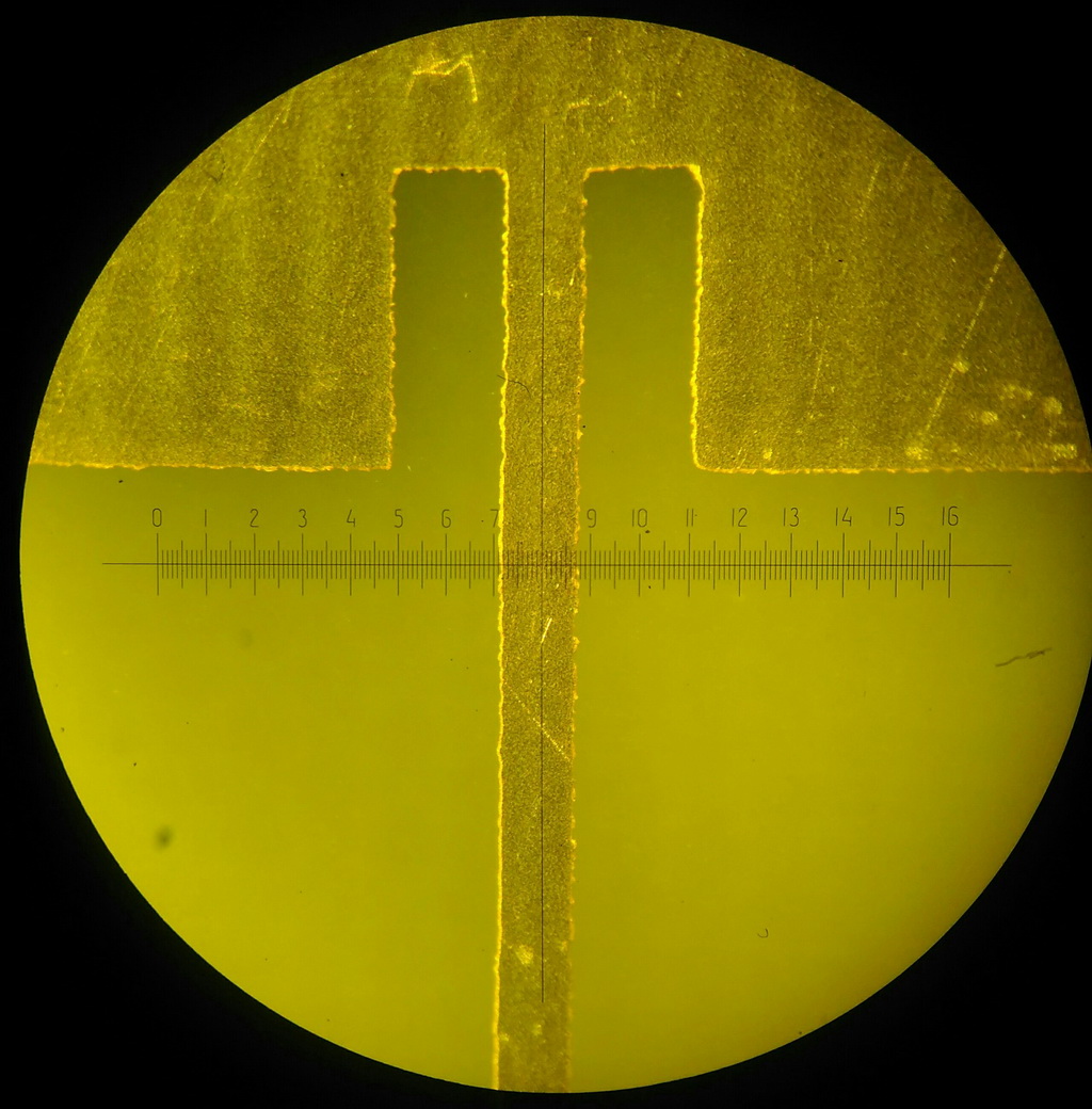 не простой процесс. Насколько я понял Вы собираетесь делать на 3 мм клееном текстолите? подумал что на точность антенны еще мог повлиять принтер когда печатает фотошаблон. как раз по вертикали я подрезал фольгу. а его наверно и не проверить будет на предмет вытягивания по вертикали.