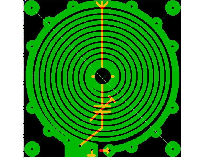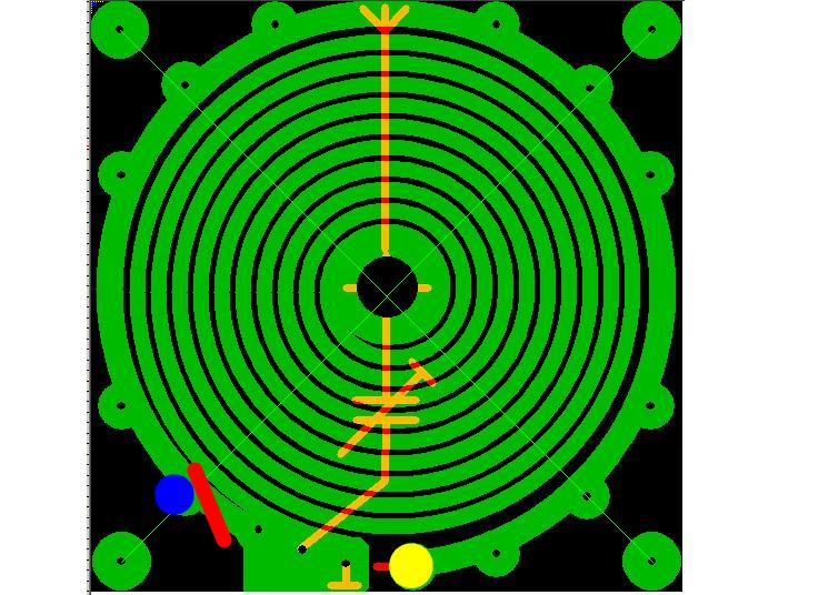 Дорожку разорвать там где красным отмечено, и припаять антенный кабель ЦЖ на желтый пятак, а экран на синий и будет Фукс для qrp. Вот уж действительно на скорую руку. Можно катушку связи вообще на другую сторону вынести и сделать её гораздо толще по все площади контурной катушки, чтобы середину там не искать, да она и в таком виде "сама спозиционнируется" за счёт топологии. Поля электромагнитные спозиционнируются имелось в виду. В узел напряжения между пучностями... это я уже нахватался