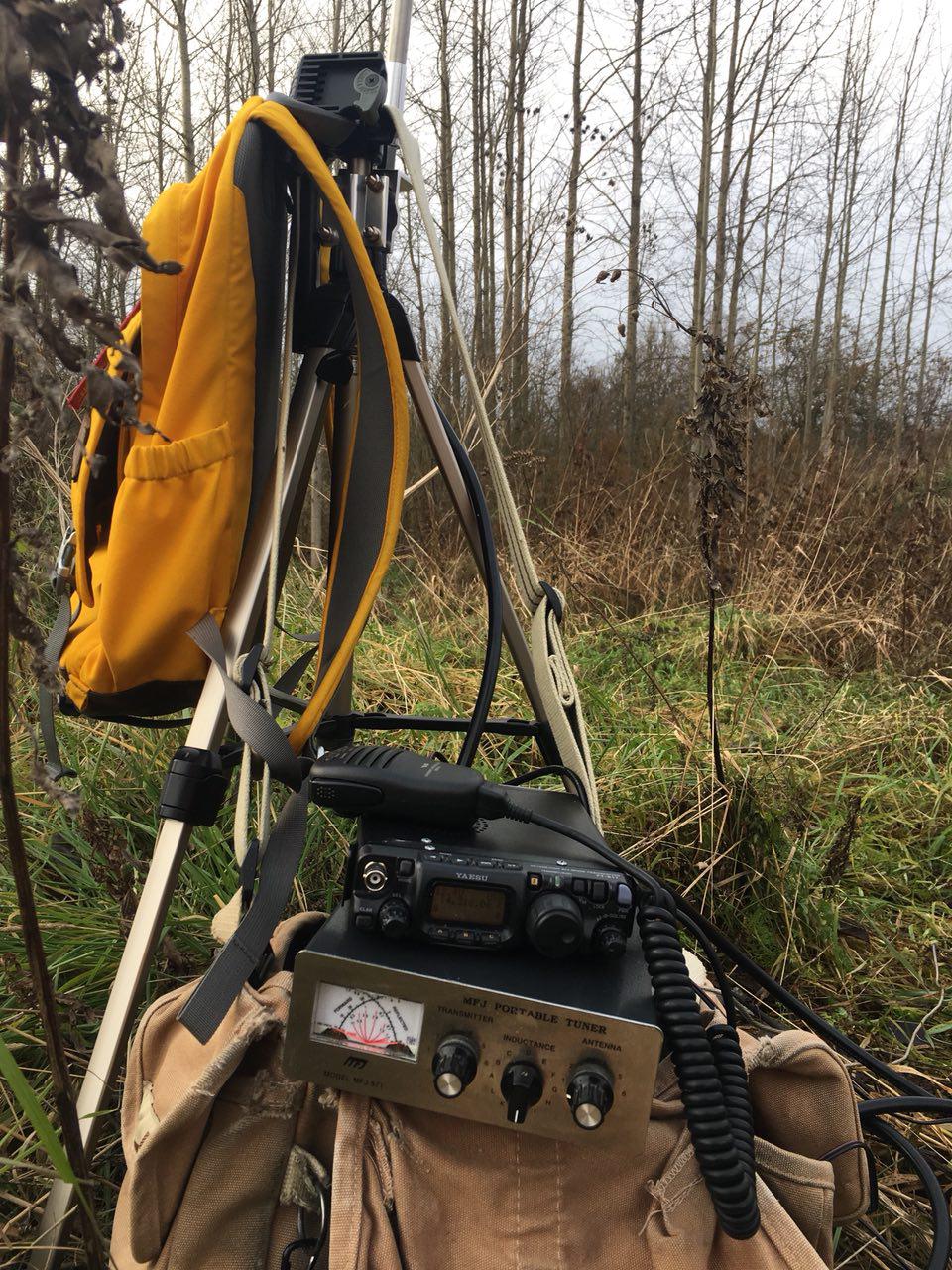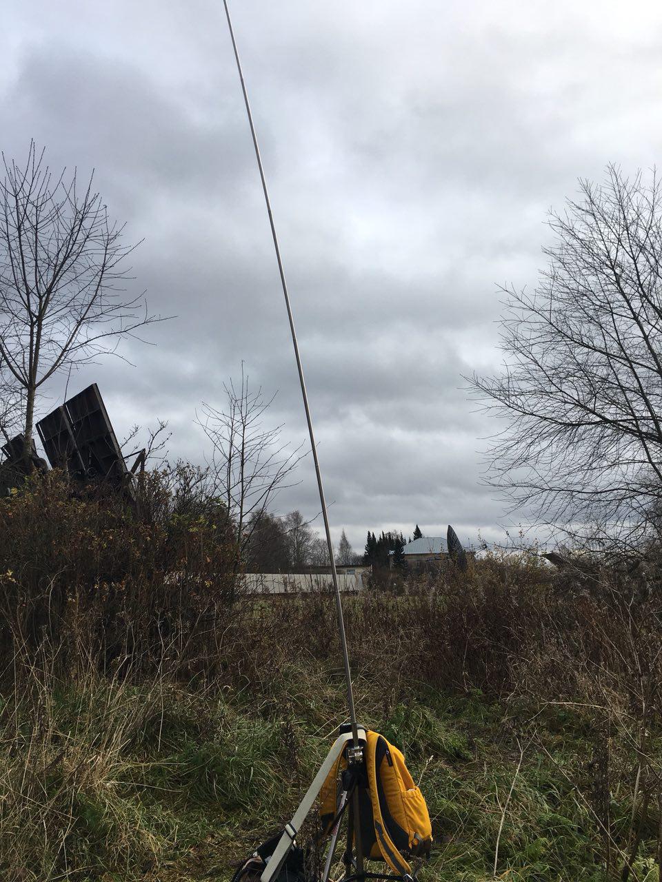 Если кому интересно, расскажу, к какому варианту пришёл в ходе своих изысканий. Итак, текущая версия комплекта (возможно, промежуточная и подлежащая дальнейшей оптимизации). 1. Телескопическая антенна MFJ 1979 5 метров 2. Крепление MFJ 342T3. Фотоштатив бюджетного класса. Для фотосъёмки годится плохо, а для антенны вполне подходит 4. Тюнер MFJ 971 В принципе, если работать на 20 метрах и короче, получается обходиться без него, уменьшая длину телескопа по показометру КСВ 5. 5 метров кабеля RG-213U C/U Radiolab. Позволяет минимизировать потери, при этом не сидеть под антенной. Возможно, что это эффект плацебо  6. Комплект противовесов из изолированного провода сечением 2 mm^2 по 4 метра. Остатки от комплекта домашнего кинотеатра. Укорачивал по месту путём скручивания 7. Yaesu-817nd - тут всё понятно Проводились испытания на берегах Онежского озера и Пулковской обсерватории. Сравнивал с "карманным телескопом" 1620 и проводом произвольной длины. Субъективные выводы: В условиях, когда есть на что забросить длинный провод или диполь, собранный комплект проигрывает по КПД вдвое. Там, где меня слышали 59 на длинный провод, рапорт менялся на 58-47. Станции, бывшие на пороге разбираемости, после переключения на телескоп тонули в шумах. Однако, QSO с рапортами 58-59 всё равно доступны, пусть и в меньшем количестве. По географии - Ростовская область, приграничные области Украины, Англия. Однако, если представить, что провод закинуть некуда - комплект вполне пригоден для связи, свернуться-развернуться, не торопясь, получается минут за 7-10. Серьёзный минус этого комплекта: сильный ветер (в один из дней было штормовое предупреждение), пытается загнуть телескоп (видно на картинке) или опрокинуть штатив. Второе лечится древним фотографическим способом - штатив увешивается сумками. На удивление хорошо получилось поработать на 2 метровом диапазоне, на глаз подбирая 5/8.