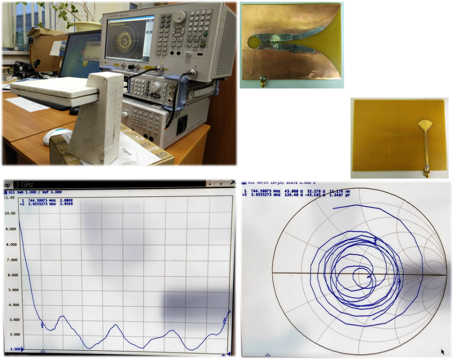 Сергей Викторович, на всех характеристиках входное сопротивление антенны около 200 Ом, поэтому патчи можно соединять параллельно, что бы получить 50, но все дело в соединительных линиях. Дело в том, что при такой толщине фторопласта их реализовать не получится. Обычно, если хочется вытравливать, то сам рисунок антенн травят на односторонне фольгированном материале, а рефлектор уже отдельно, на рассчитанном расстоянии. Но если прям очень сильно хочется на двухстороннем фторопласте, то смещайте точку питания и переходите на соединительные линии с низким волновым сопротивлением. Делается это просто, на последнем рисунке патча, где у Вас цифра один, по бокам в верх к центру делаете прорези нужной длины, а ширина этого полоска и будет нужное волновое сопротивление, а входное сопротивление патча будет зависеть от глубины этих прорезей.