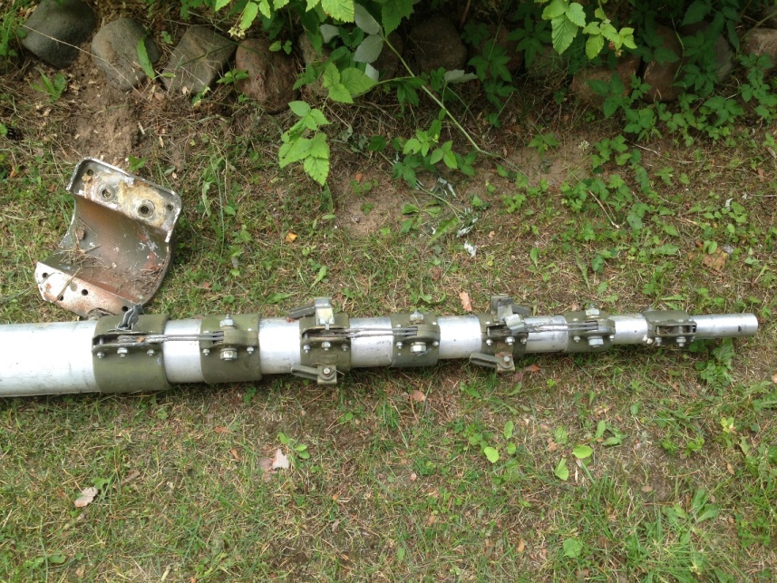 Для адресного и полного ответа важно точно знать который из 2-х тросов и в каком месте порван. Возможно в каком то звене заклинило ролик один или оба. Возможно направляющая вышла из паза кожуха и колено заклинило в нем, что и повлекло обрыв тороса в конкретном звене. Уточните какой из 2-х тросов порван, посмотрите на волокна порванного троса, поймете сразу причину обрыва. Порван трос у лебедки, наиболее вероятно из-за спуска "пустой" мачты, его диаметр измеренный штангенциркулем 6мм. Остальные колена двигаются плавно и без заедания, на первый взляд направляющие в хорошем состоянии и без дефектов. Большая просьба опытным взглядом оценить общее состояние "пациента", стоит ли связываться с данным экземпляром?! Может заметите отсутствие важных деталей, на фото всё что удалось найти, мачту разобрали до этого?! Мне не очень понятен способ закрепления конца троса на барабане, возможно не хватает деталей?! Вложение: