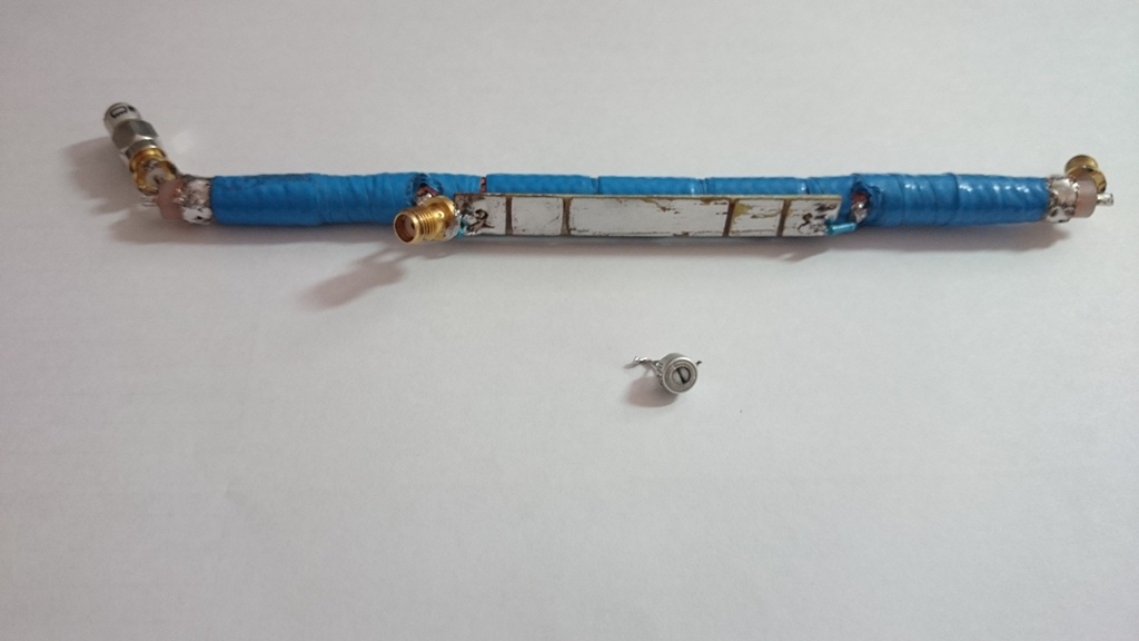 RL1L писал(а): Вот фото направленного ответвителя из коаксиального кабеля. У меня практически тот же самый конструктив: рама с UHF разъемами (которые выше), схема Ваша - с резисторами на концах одного отвода. Подключение также как Вы рекомендовали - пластинка из стеклотекстолита с пропилами фольги. Единственное отличие - оплетка не притянута к общему проводнику посередине отвода. Ну еще точка соединения диода и конденсатора не на фольге, а в воздухе. В принципе, на 5 Вт работает и как вариант устраивает (на 1 Вт и предыдущий вариант с волноводом годится). Хочу попробовать такой вариант, может получится - вместо одного проводника скрученная косичка из двух проводников, у каждого свой нагрузочный резистор по обоим концам. Я такие схемы в интернете видел, но вот насчет косички нигде не встречал. Будет работать?