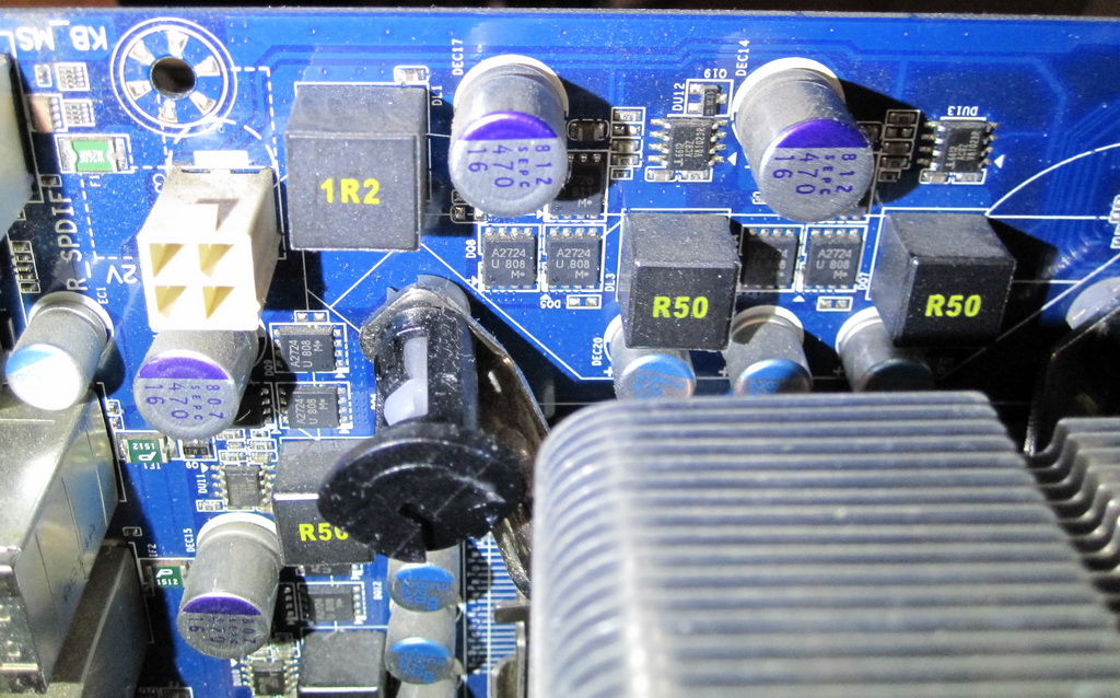 Вот и у меня на материнке электролиты такой же конструкции. Видать не очень надежные кондеры. Где-то 3-4 года проработала материнка нормально, а потом началась свистопляска с заменой оперативки, видюхи и т.д. ничего не помогло. А на материнке самый ненадежный элемент это кондеры.