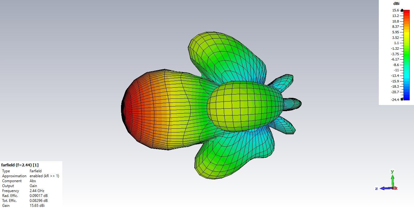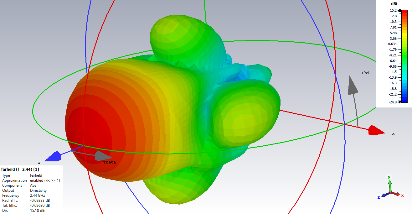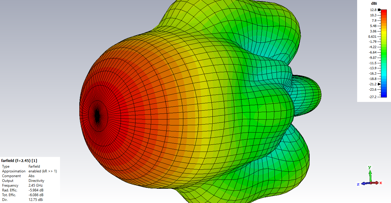 Чтобы оценить антенну нужен файл HFSS. А так замечу, что лучше выводить график Gain, а не Dir, поскольку антенна на FR4 - потери она имеет значительные из-за большого tg. Посмотрите на значение Tot Effic - минус 6 дБ( ужас для антенны).