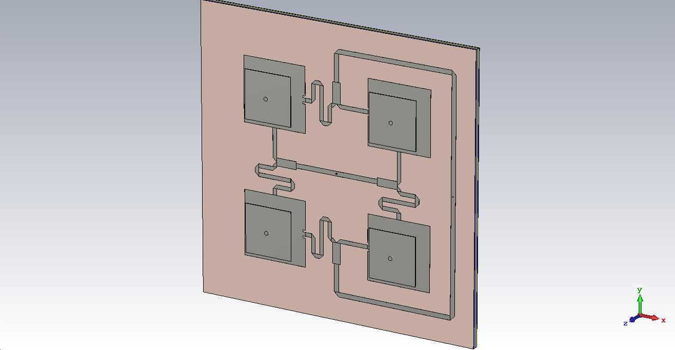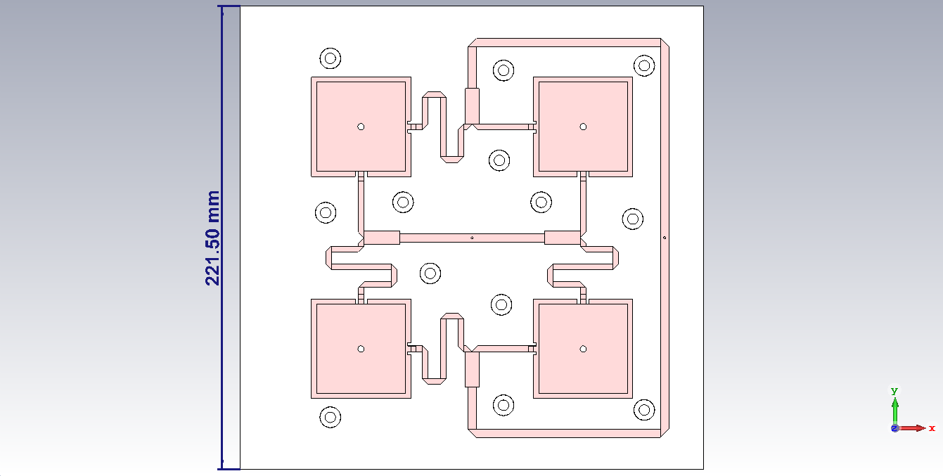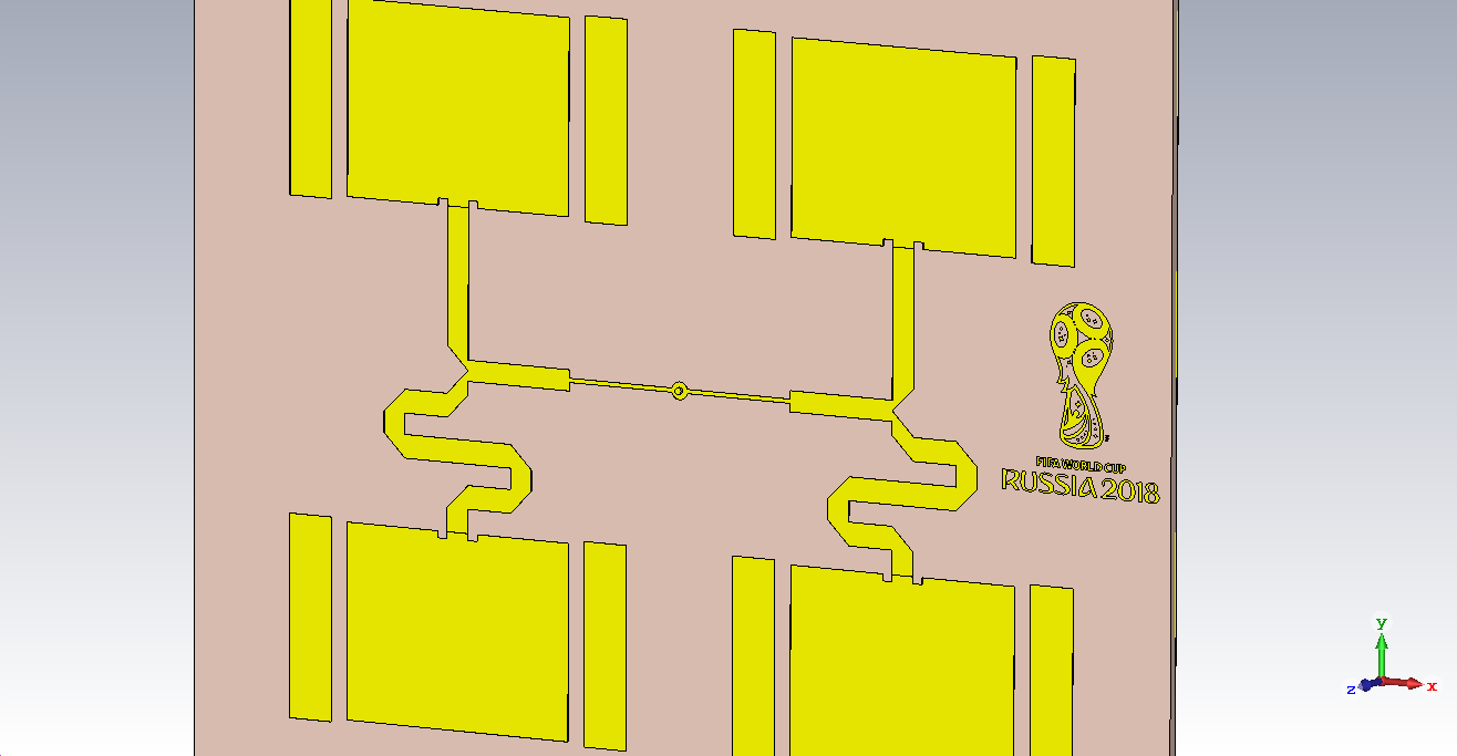 Обрисовал представленную ранее антенну, на моем компьютере оптимизировать её не представляется возможным. Если у кого-нибудь появится желание на мощном ПК настроить её, то пришлю проект для CST на почту. Пишите адрес здесь либо в личку.