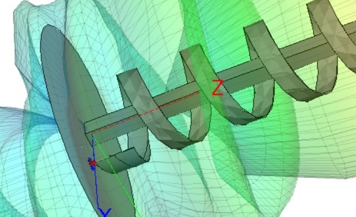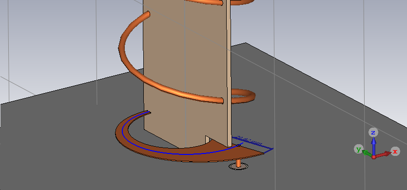 первый вариант спиральки с почти треугольным трансформатором согласуется хорошо на 50 ом. второй с экспоненциальным не хочет согласовываться - на 50 ом выходит, но мешает емкость около -25-30 ом. сделал еще третий вариант похожий на первый (с треугольником) но треугольник нарисован по другому - правильно (испытаю чуть позже). в первом проекте я его сделал разрезав секущей плоскостью полукольцо и этот почти треугольник как ни странно согласует да так что не верится ). позже постараюсь сделать его развертку 1:1 пока что ищу чем его цилиндрическую поверхность развернуть и спроицировать на плоскость.