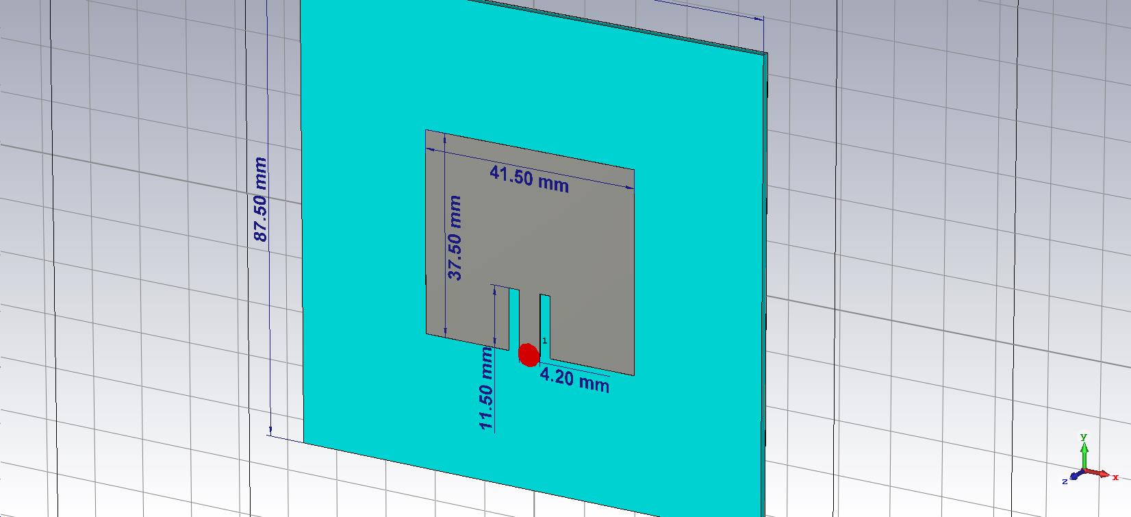импеданс патча с питающей линией лямда\2 = 42,26 мм. попробую покрутить размеры выреза