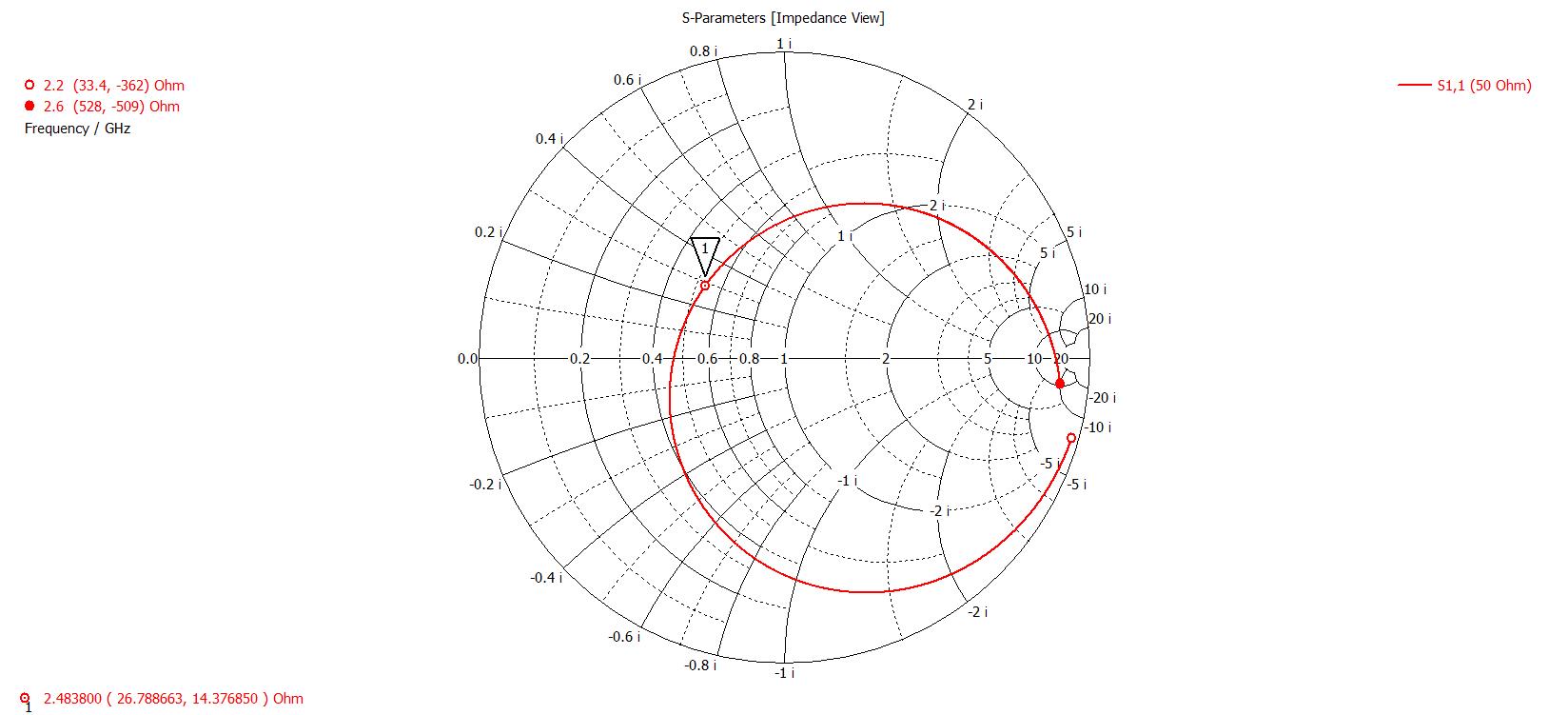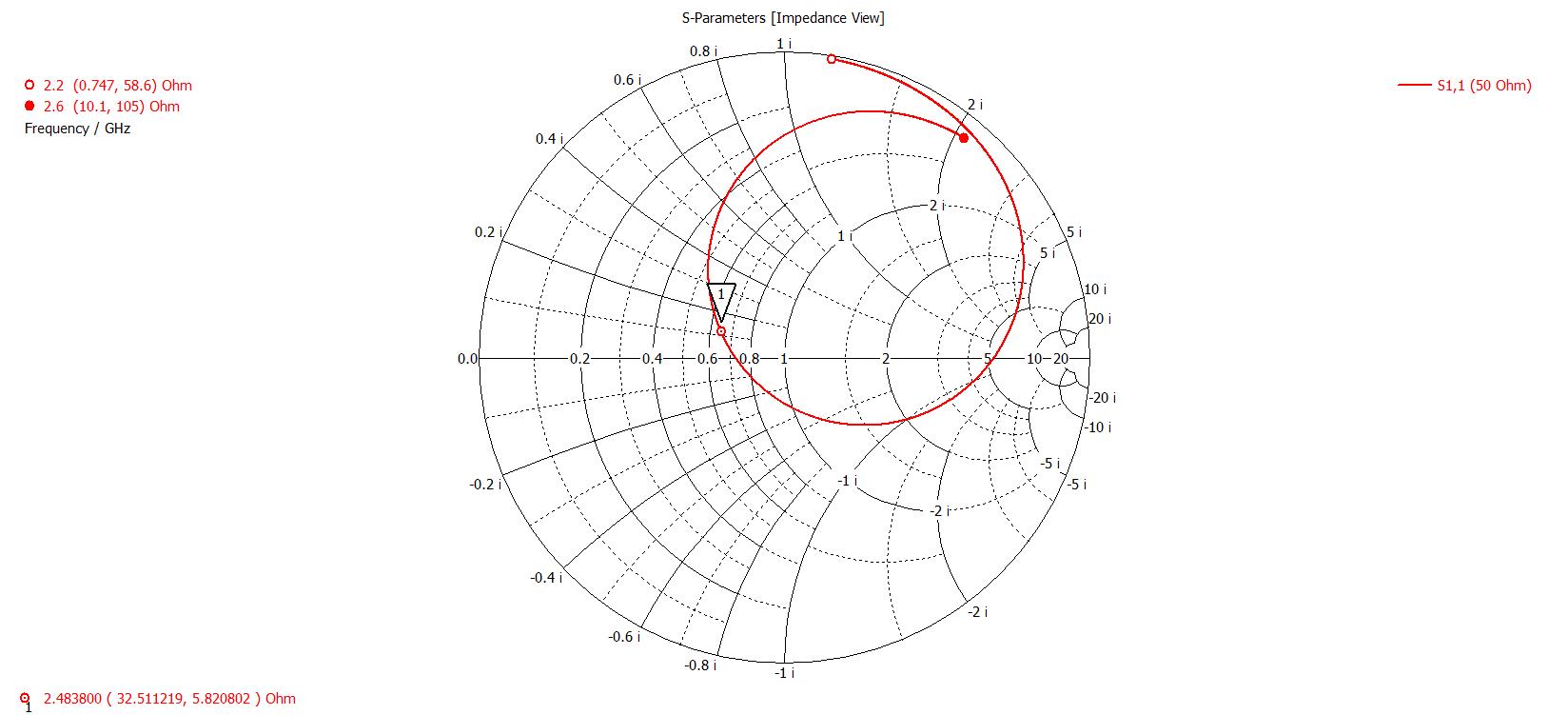 Не понятно: удлинил питающую 50 омную линию на 10 мм и всё развалилось на диаграмме.