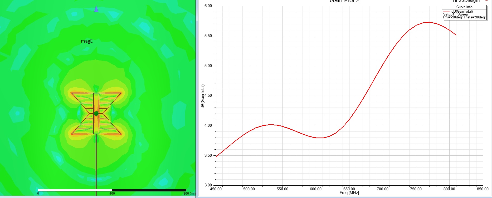 Shur, у Вас в качестве излучателя F-антенна, не совсем то, что просили. Классическая запитка микрополосковой антенны бывает коаксиальным кабелем или линией. Здесь ни то ни другое. Многослойная структура, сильно отличающаяся от базового варианта patch-антенны. То, что удалось довести до образца - поздравляю! --- Вашему вниманию предлагается антенна с полосой на все ДМВ каналы - типа Batwing. Согласующее устройство 300-75 Ом можно взять от польской антенны. Полотно можно вырезать из жести или спаять из проволок. Согласование хорошее, а вот усиление небольшое всего 4,5...5 дБи. Вложение: