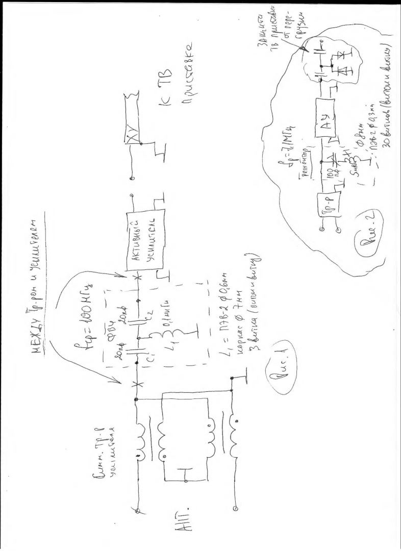 UB1CBK писал(а): Антенна активная, питание на антенну включается в приставке. А по подробнее о фильтрах, что за зверь такой, как изготовить, где купить , как установить? Из рисунка все понятно. Фильтр устанавливается между согласующесимметрирующим трансформатором и входом усилителя рис.1, если нет трансформатора, то просто на входе, его сопротивление 75 Ом. На рис.2 применение режекторного контура, а так же защитных диодов(необязательно). Если есть возможность, то надо уменьшить усиление ТВ усилителя до минимально необходимого. Такой ФВЧ можно установить и на выходе усилителя, хуже не будет, но только до дросселя питания, т.е. сразу после усилителя.