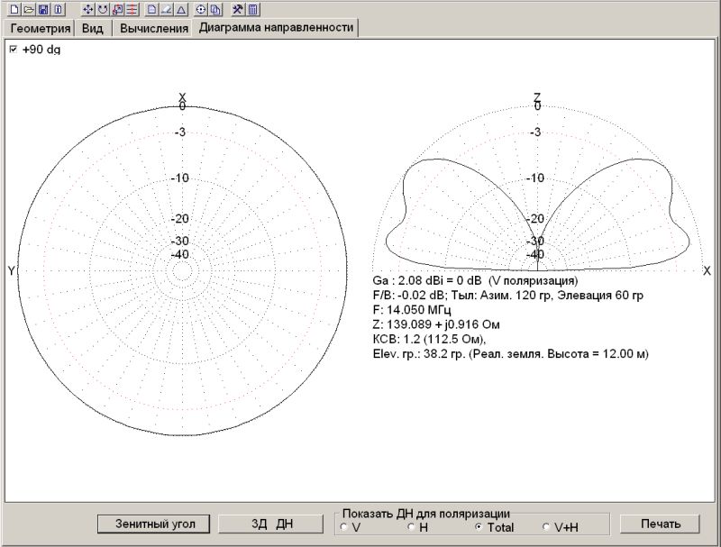 RM1C писал(а): А Вы можете показать диаграмму, если удочка расположена перпендикулярно балкону, т.е. параллельно земле? 2el_gor_xx это как раз расположение диполя из 2-х удочек горизонтально, а для одной все намного хуже (что горизонтально, что вертикально)  влияние балкона и стены позади балкона не учитывалось, также как и подключение СУ