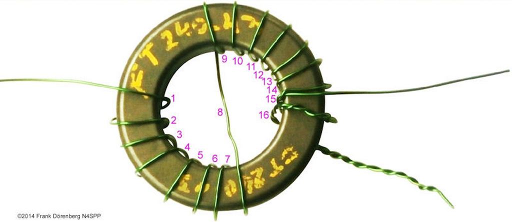 Вот фото трансформатор, на котором цифрами обозначено как считаются витки. На фото трансформатор 1:64, 2 витка первичная обмотка и 16 витков вторичная.