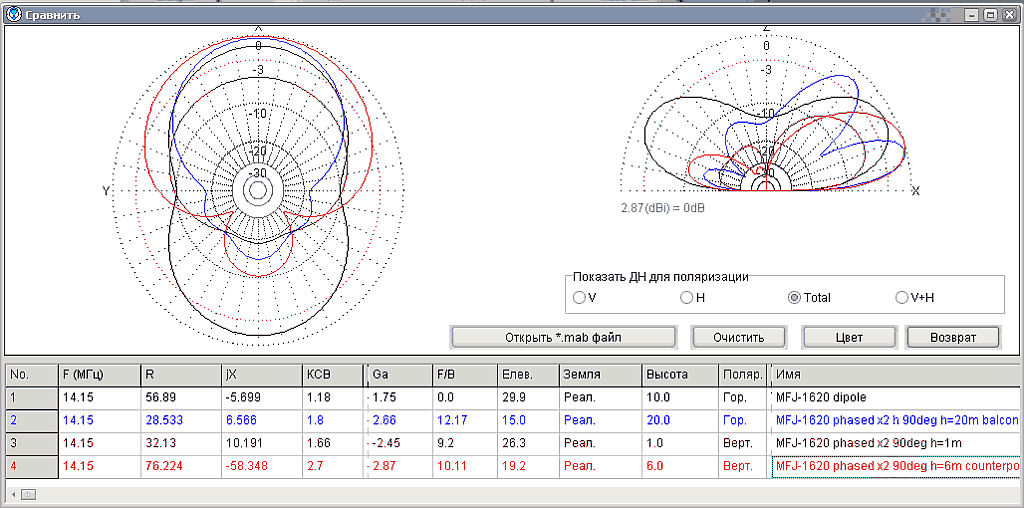 1. Сравнениеразличных 4 вариантов включения пары антенн MFJ 16XX: Вложение: