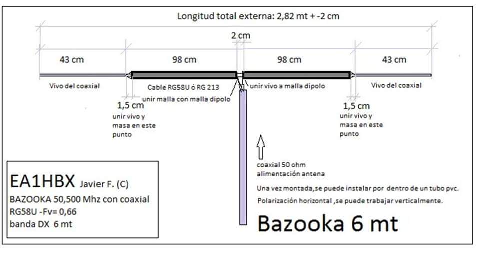 BAZOOKA на 6 метров. Конструкция выходного дня. Не повторял, но при случае обязательно попробую в связи с наличием обрезков коаксиальных кабелей. Вложение: