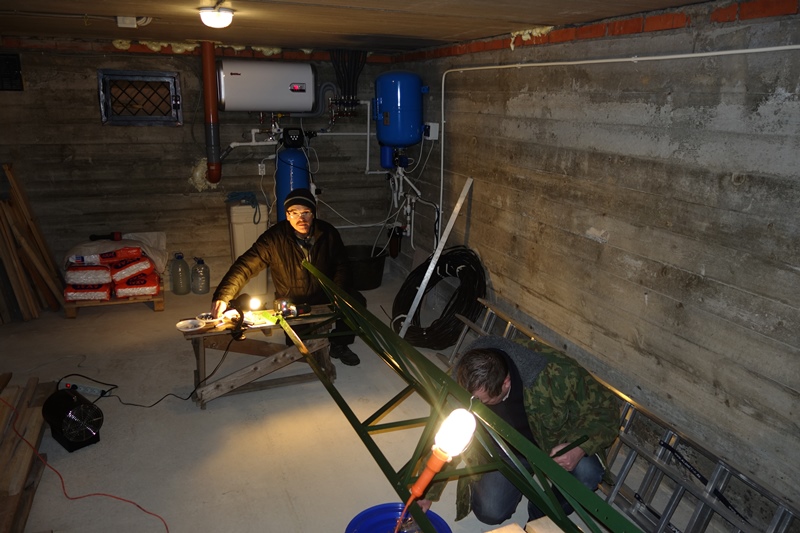 Весь день провели на улице, собирая мачту, готовя такелаж и площадку для подъема антенны.