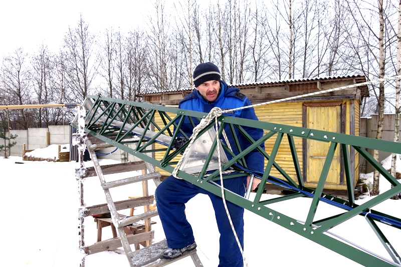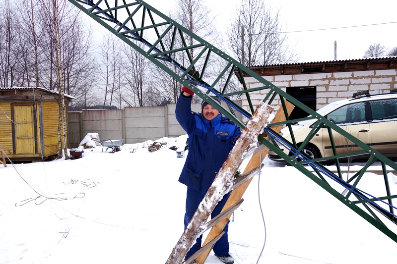 Через выходные встретились с Михаилом. Честно говоря, не верилось, что за выходные мы успеем все сделать. Работы было непочатый край. Но, вооружившись оптимизмом и афоризмами Геродота, взялись за дело. Погода была самая, что ни на есть подходящая для установки антенн – мороз и ветер, время от времени начинал сыпать снежок.