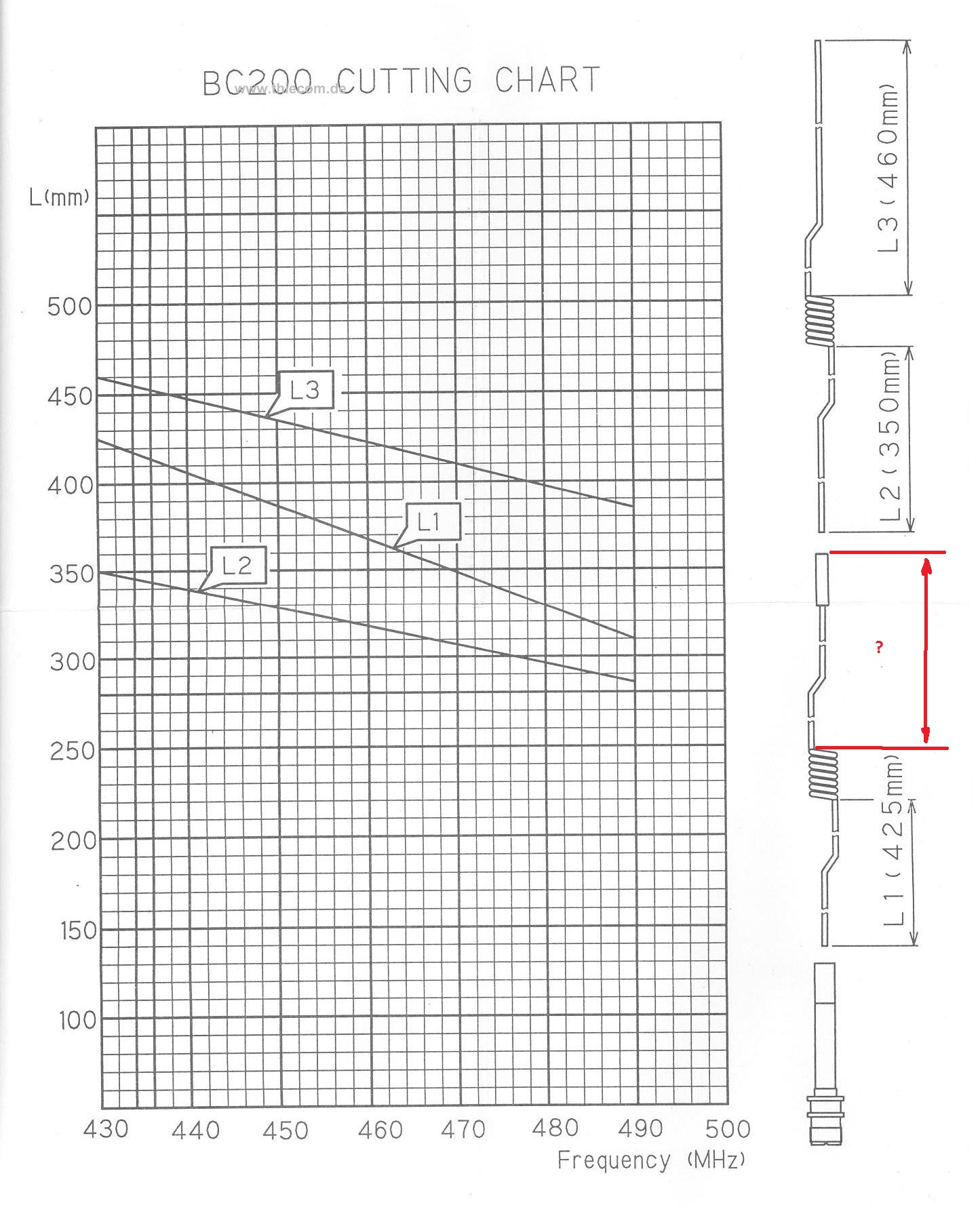Скорее всего перепутали графики для L2 и L3, т.е. L2 должно быть 460 мм, а L3 должно быть 350 мм, при чем L2 это вся длина среднего излучателя от катушки до катушки. Вот тогда все срастается.