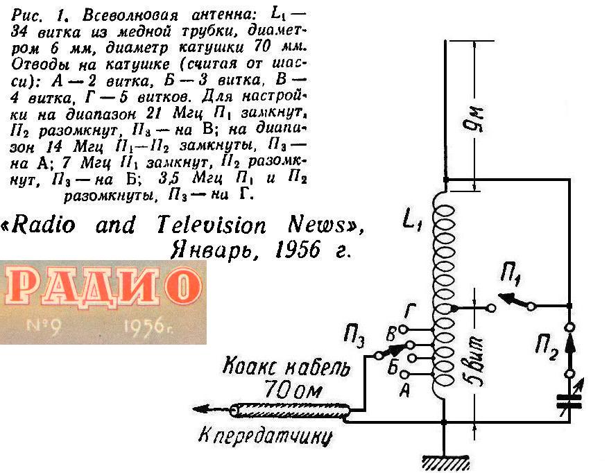 Радио, 1956 всеволновая антенна с удлиняющей катушкой Вложение: