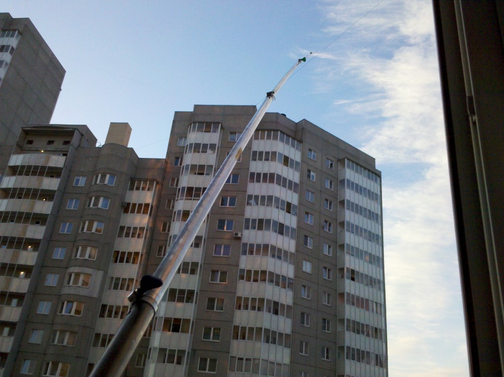 to RA1AHQ: +1 Противовес для "удочки" большое дело! Если несколько окон вашей квартиры выходят на одну сторону дома, можно несколько внешних металлических оконных козырьков снаружи соединить между собой проводом. Получится своеобразный горизонтальный радиал (или даже 2). Работает такой радиал недурно.