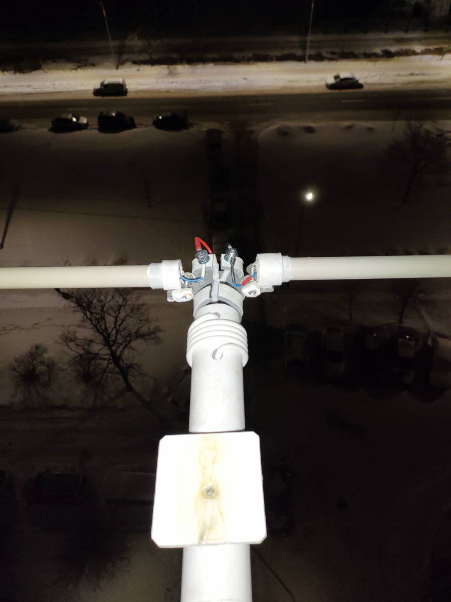 А если попытаться сделать вибратор на основе длинной (7-10 метров) китайской удочки перпендикулярно стене дома? С закреплением комля на балконе. В текущей конструкции антенны мне основная проблема представляется в том, что полотна антенны расположены очень уж близко к стене и несущим конструкциям дома - наверняка же железобетон... В результате весьма значительная часть излучаемой антенной мощности так и будет в этих ж/б конструкциях и оставаться. Ну и на прием - получаете все бытовые помехи от всякой китайчатины в квартирах соседей. Так что скорее всего, надо думать над тем, как вынести антенну или хотя бы основную излучающую часть куда подальше.... Понятное дело, в городе каждому приходится выкручиваться кто как может, так что эти мысли не в претензию, а просто к размышлению.