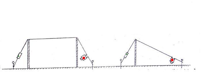 Ещё о широкополосных антеннах. На "полевом дне" испытал GP на ВЧ диапазоны высотой 6.6 метра с питанием по двухпроводке. Точка питания на высоте 1.6 метра от земли. (Это расстояние выбрано по примерно симметричным токам в проводах на всех частотах 14-30 МГц). Антенна работала на 21MHz (при мощности 5 Вт связался Испанией). Переход от двухпроводки к СУ в шеке - балун LDG 1:1. При помощи тюнера строится в диапазоне 14-30 МГц. GP высотой 6.6 метра. Главный недостаток - противовесы 16 штук не позволяют быстро развернуть её.