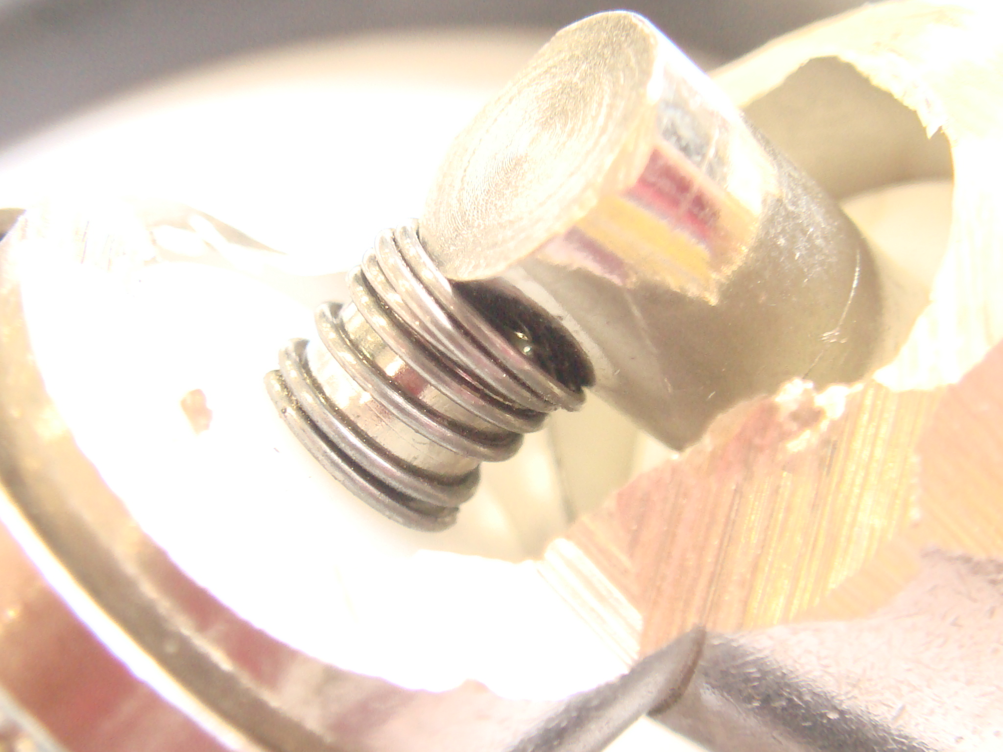 Был у меня уголок, в котором была не такая пружинка, а "лира", прикрученная в середине винтиком. Винтик болтается, лира болтается...