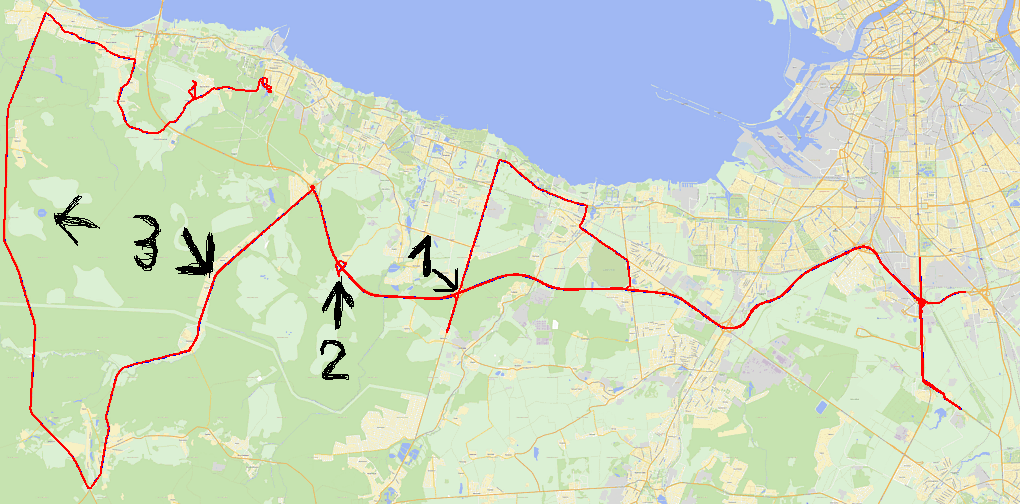На охоте старался больше пользоваться именно 80м пеленгатором. Очень хотелось его испытать в реальных, а не в лабораторных условиях. Получилось так, что первый пеленг на него удалось взять только со стоянки на КАД. Это примерно 5-6км до маяка. Пеленг оказался немного неправильный. Это я по карте потом посмотрел... около стоянки той ВЛЭП идет и она внесла коррективы небольшие. Но в целом направление было верное. На озере направление тоже показало точно. Правда у меня не настроен штырь как надо и кардиоида не получается. Буду с этим разбираться. На стартовой точке, на Светлановской площади, я маяка не услышал. В Мистолово тоже ничего не удалось поймать. Ни на самоделку, ни на фт-817 с ферритовой антенной. Может вопросы по 80м диапазону сюда: viewtopic.php?f=15&t=6545 перенести?