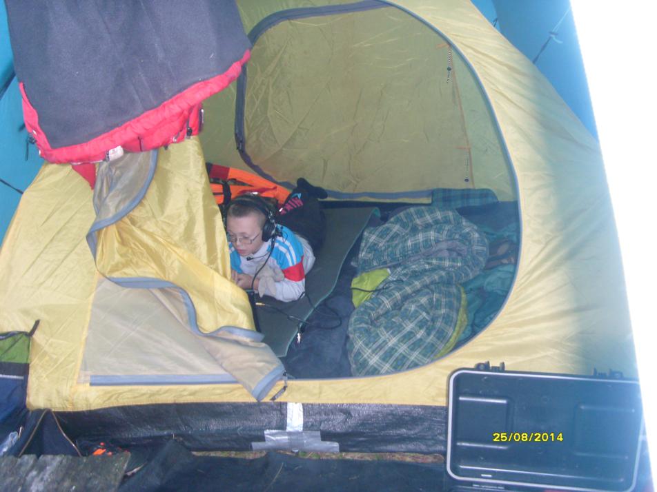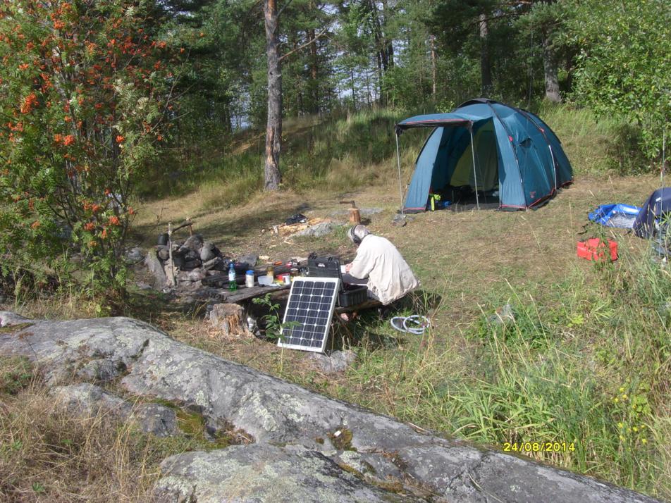 В последней декаде августа, безуспешно предлагая всем составить мне компанию в посещении островов На Ладожском озере(даже объявление на форуме не помогло), всё- таки нашёл желающего- RU1AT- моего одноклассника- Евгения. И вот мы втроём,Миша - младший, я и RU1AT, благополучно добрались до посёлка Ни́эмелянхови , оставили машину у моего товарища, 15 км по воде... и мы на острове... Поставили палатку , наладили быт.... Вложение: