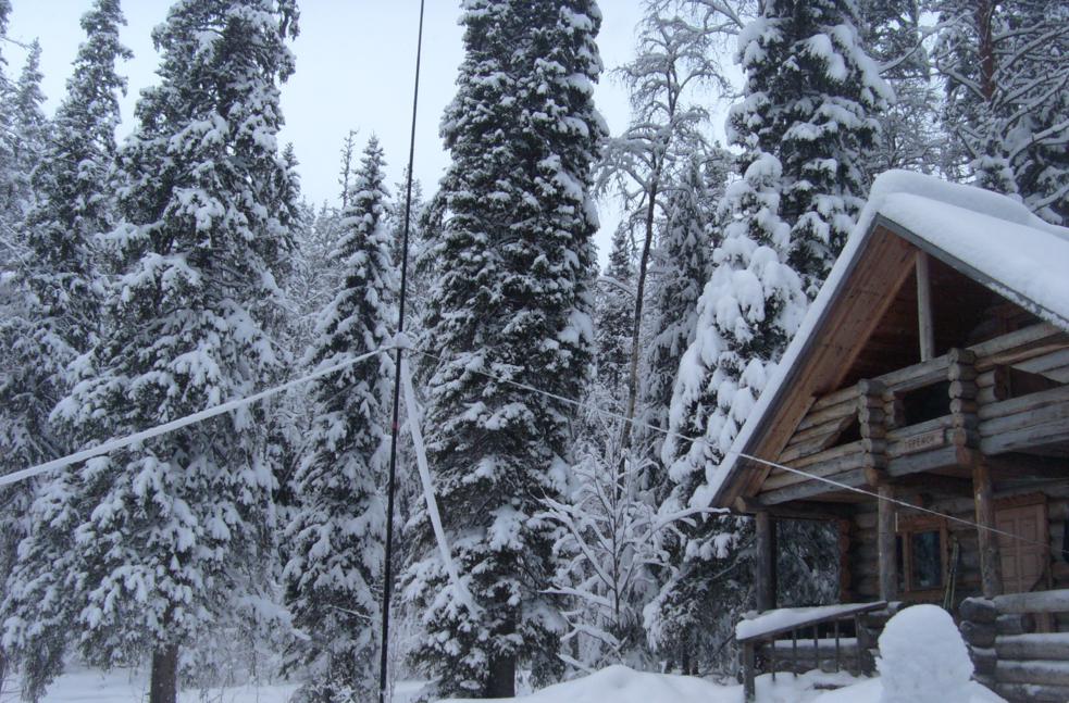Настало время и для радио... Поставил мачту пластиковую 12 метров- проволочный вертикал, хорошо он работал на 10, 15 и 20 метров, работа на 40- не порадовала, то ли проход плохой, то ли мешали заснеженные ели Вложение: