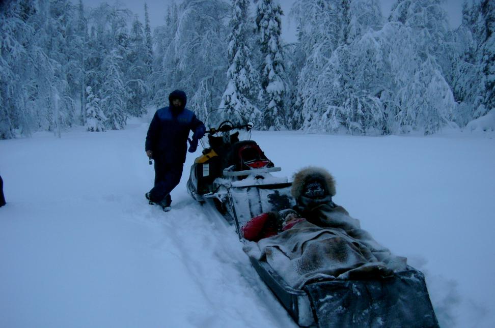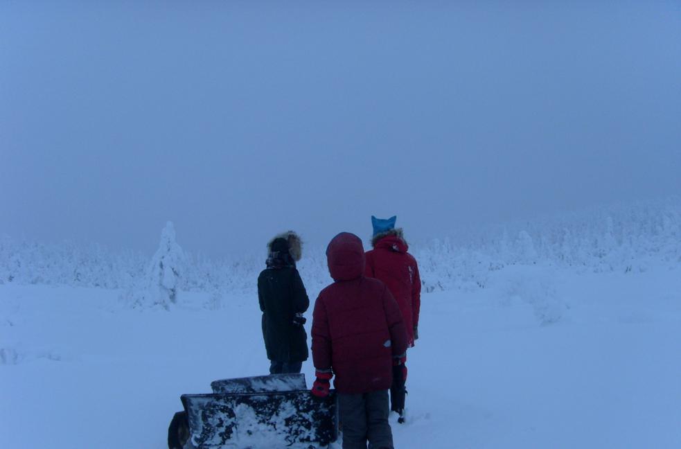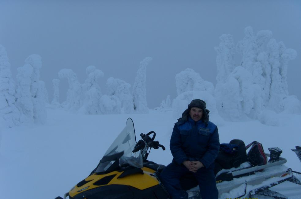 Очень много впечатлений оставила и поездка на снегоходе на одну из самых высоких гор Карелии-Нуорунен- 576 метров Хорошо , что в этот день температура немного повысилась- было -12 Вложение: