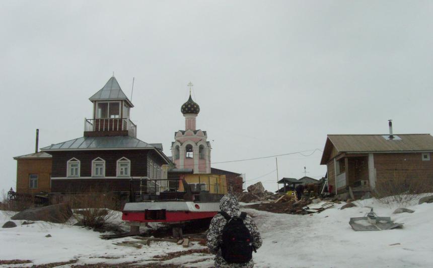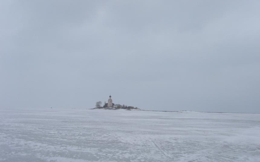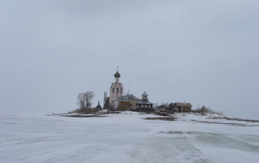 На остров пришлось идти по льду 8 километров от того места , куда ещё можно подъехать на машине.Лёд довольно толстый- заглянул в лунку у рыбаков ( в субботу довольно много сидело на льду озера) - не меньше 30-40 см..... В монастырь на остров два года назад провели подводный кабель, так что теперь у них постоянное электропитание. Вот немного фото - как сейчас выглядит монастырь . На глянцевой открытке- конечно красивее.............. Только появился на горизонте Вложение: