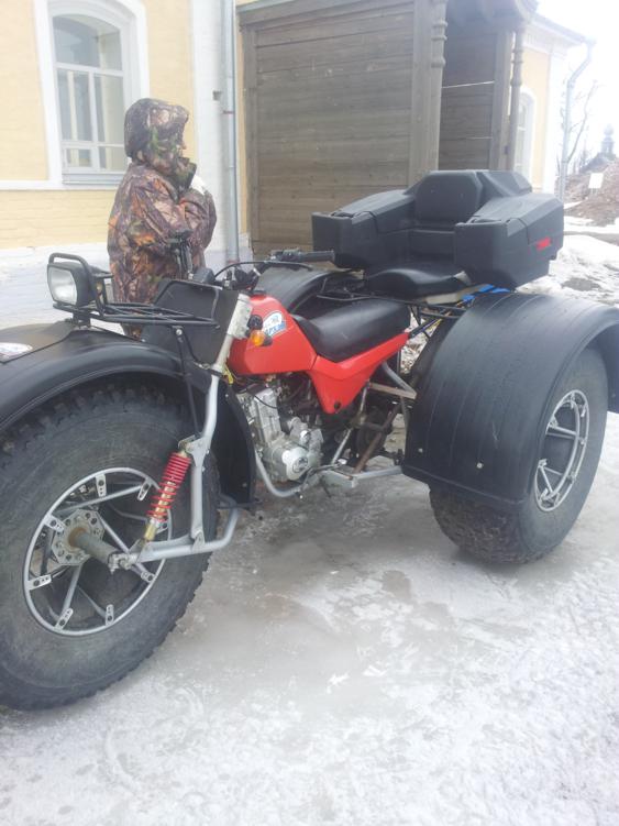 Вот на таких транспортных средствах ездят местные рыбаки Назад, в воскресенье, дорога заняла намного меньше времени- меня с Михаилом UA1QV подвезли до берега на снегоходе Вложение:
