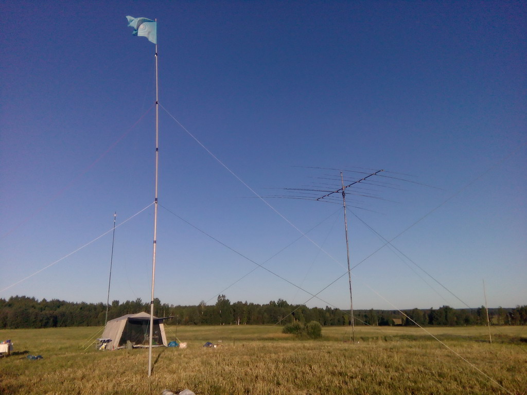 Вечером в пятницу приезжает Никита RA1AO и практически один устанавливает свою 18 метровую мачту с двумя инверторами. Вложение: