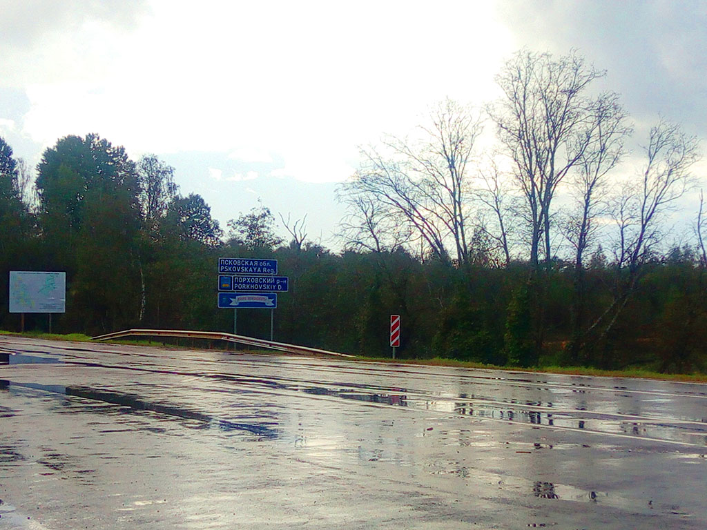 Для сравнения, фотографирую табличку начала Псковской области, где на обочине гостеприимно установлен отбойник ))) Вложение: