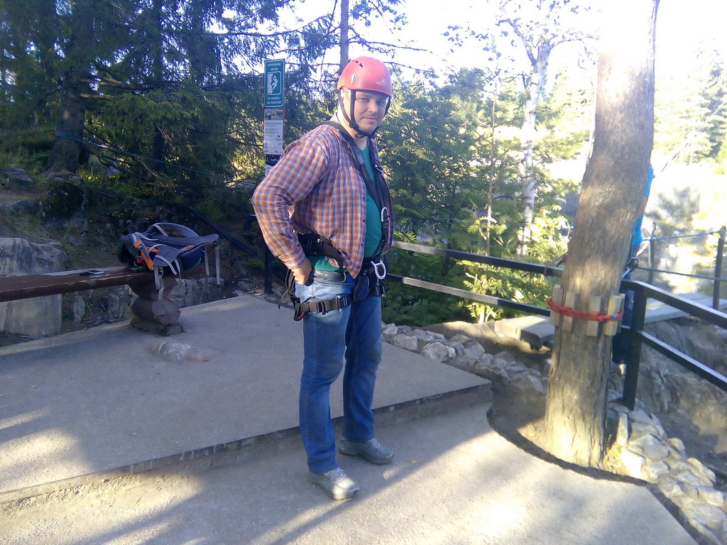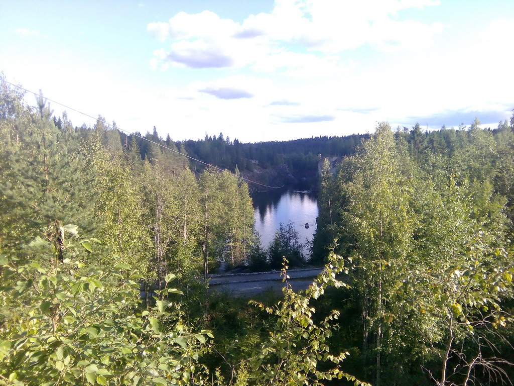 Когда мы проходили мимо ребят, которые работали ассистентами на "тарзанке", они нас попросили довести одного из них по пути в Ленобласть, на что пообещали каждого из нас бесплатно скинуть с обрыва мраморного каньона... Аня с Димой сразу отказались, а я согласился. Я еще никогда на пробовал "тарзанку"... Самый ответственный момент, это пересилить своё чувство сомосохранения и прыгнуть. Вложение: