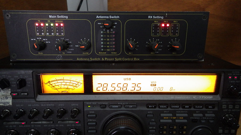 Вот такой коммутатор стоит на каждом рабочем месте. С помощью переключателей можно выбрать от одного до четырёх направлений на приём одновременно и один или два направления на передачу. Из каждого коммутатора был сделан дополнительный выносной пульт с рычажком-качалкой для оперативного выбора направления приёма, который крепился прямо к клавиатурам под левую руку. Вложение: