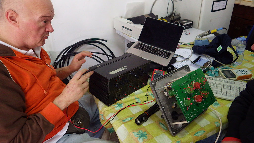 Когда мы настроили все рабочие места, получилось следующая картина: Место №1: Icom IC775DSP – RUN20 Место №2: Icom IC775DSP – RUN15 Место №3: Elecraft K3 – RUN80 Место №4: Elecraft K3 – RUN40 / RUN160 Место №5: Elecraft K3 – RUN10 / S&P Я был не согласен с таким распределением мест. В этом варианте мы совсем упускали 160, и теряли подбор, когда пёрла 10-ка. По моему мнению, надо было организовать еще два рабочих места, хотя тут начинались другие проблемы: нужны были дополнительные трансиверы и усилители мощности. Немного поработав в эфире, мы поехали в ресторан справлять день рождения Фабио I4UFH. День рождения справляли в итальянском ресторане «Таверна». Хозяин ресторана Лука, специально для Фабио приготовил вкусный тортик без грамма сахара, это он отметил особенно. После ресторана появилась идея поехать опять на позицию поработать на НЧ диапазонах и проверить, как работают бевериджи. Сергей RW1F неплохо поработал на 80, говорит, что было нуу ооочень много радиостанций из Северной Америки.