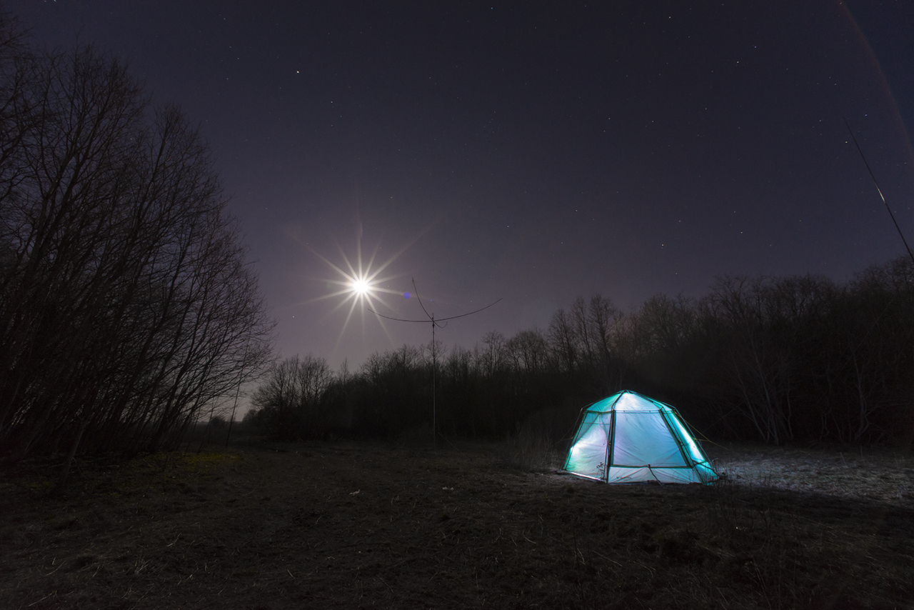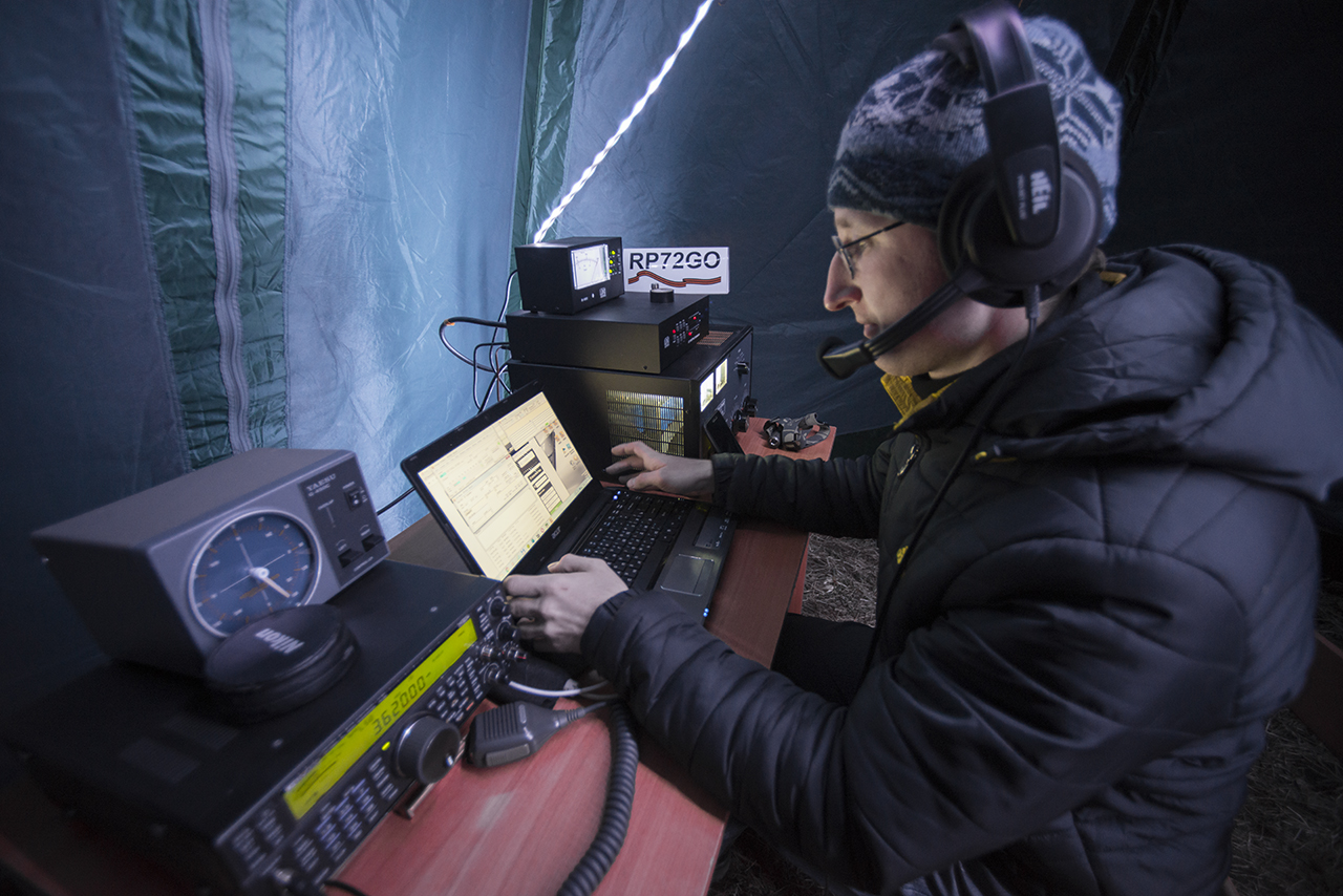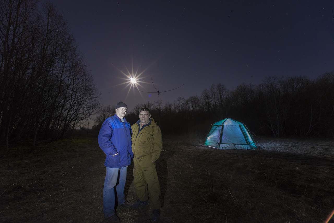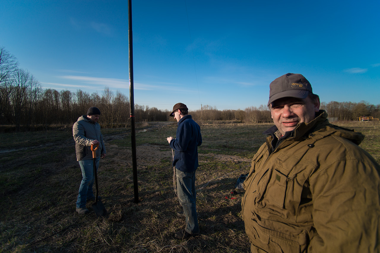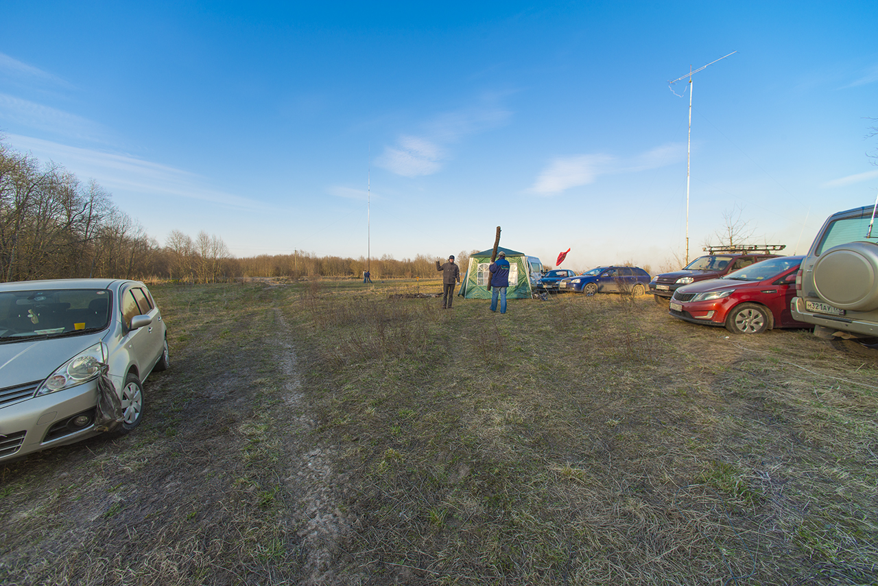 Был 2 дня с отъездом в город на ночевку. Понравилось, что всё время светило солнце, и сухой грунт. С другой стороны, ночью был минус, днем пронизывающий ветер со снежинками. Но по сравнению с Лугой, условия были гораздо лучше, т.к. все время можно было находиться на свежем воздуже. Почти провел на новую антенну одну связь телеграфом, с YO4VM, Костя. Но 18 МГц было нестабильное прохождение (21 МГц открылся позднее, только телеграф). Команда RP72GO работала на 80-40-30-20, CW и телефоном и провела очень много связей.