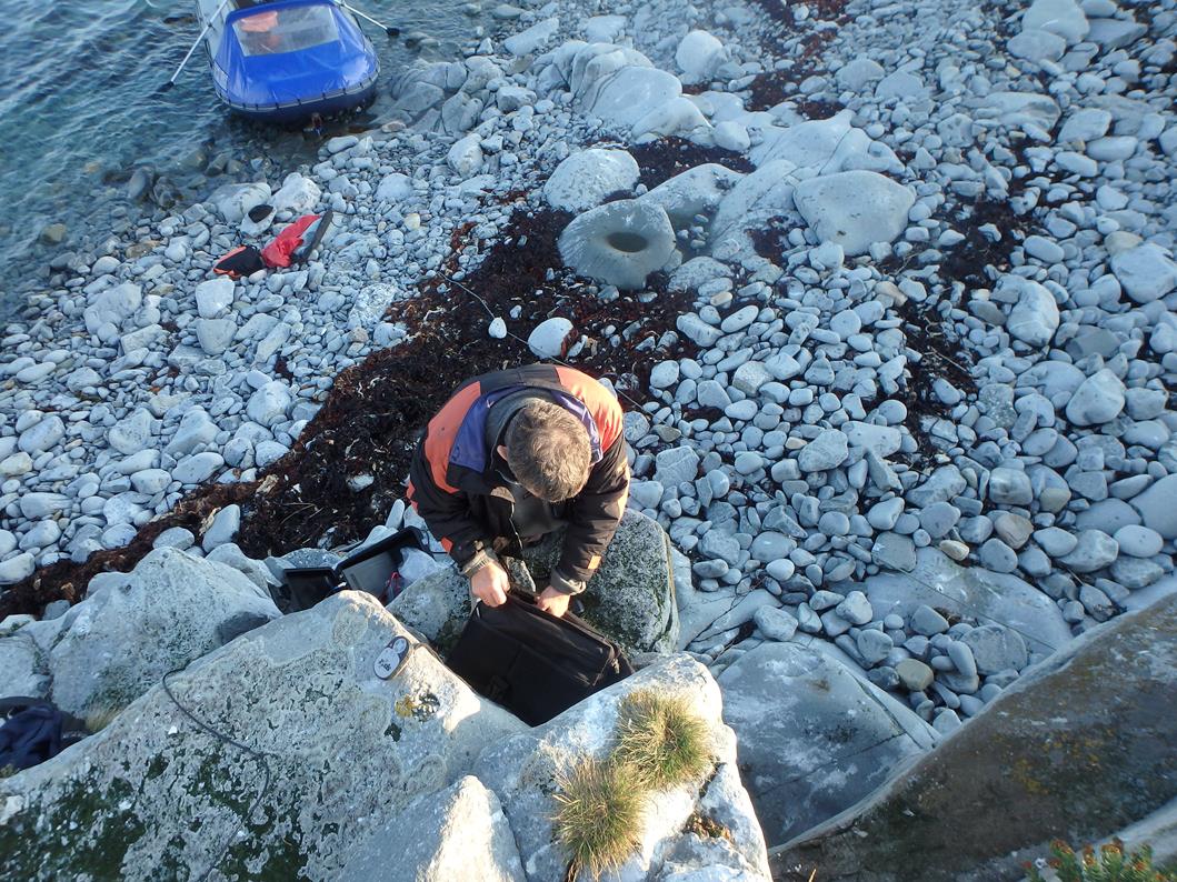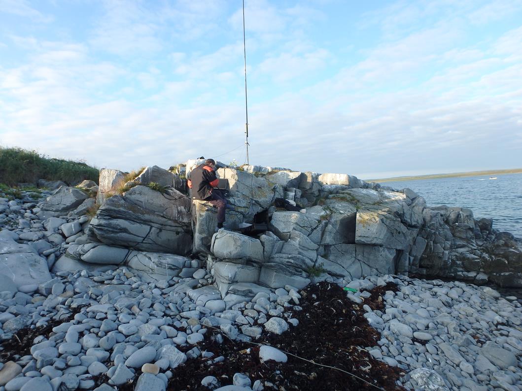 По спокойной воде дорога занимает 20 минут....и мы на острове... Как выяснится главный недостаток - отсутствие пресной воды...Так что за водой -на Рыбачий... Прибрежная полоса -каменистая, расположится на стоянку сложно, а наверху всё сильно заросло.....а до воды больше 100 метров... Поэтому VDA наверху, но помня наставления RA1AO ,что антенну "надо ставить как можно ближе к воде"", второй сетап будет у моря... Вложение: