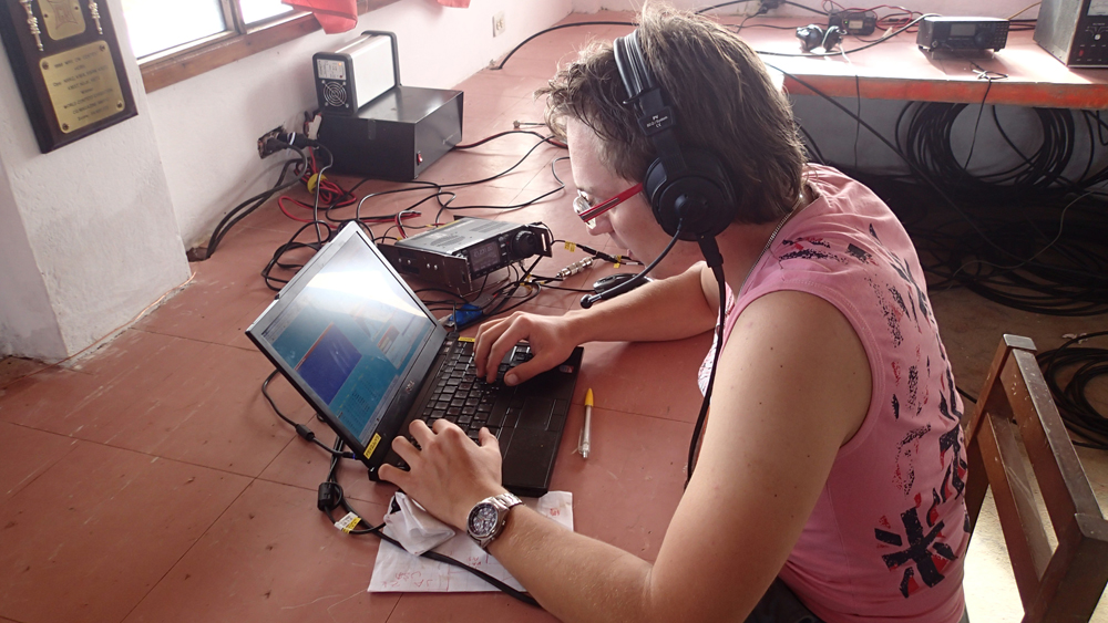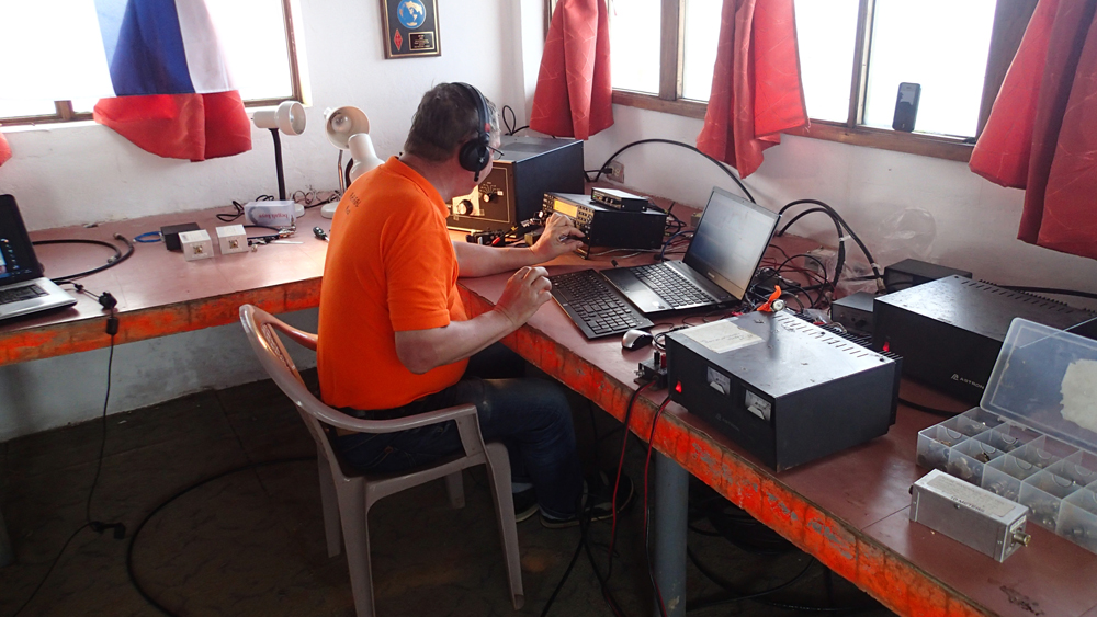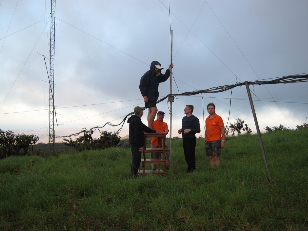 Мы прибыли на Галапагосы, а именно на остров Сан-Кристобаль, 21 Ноября, и практически сразу появились на диапазонах. Нам очень повезло с местом. В середине 90 годов американцы построили супер позицию в центре острова, и выигрывали оттуда практически все крупные соревнования. Был построен трехэтажный бункер с подсобными помещениями, кухней, спальнями и просторным шэком на десяток рабочих мест. Поставлены 4 сорокаметровые мачты с ягами на все высокочастотные диапазоны во все необходимые направления. Ничего крутить не надо. Но где-то в 2005 -2006 году выяснились неприятные обстоятельства, связанные с легитимностью позывного HC8N. Это явилось одной из главных причин, почему станция замолчала. С 2006 года там никого не было, все покрылось пылью и коррозией. В основном это касается антенн. Бункер находится на горе 630м над уровнем океана, и океан этот со всеми своими экваториальными течениями формирует уникальный климат на каждом из островов. Наша гора 70-80 процентов времени ( во всяком случае, когда мы там были) находится в облаке. Влажность 100%. Все и везде мокрое, просушить невозможно. НО тепло и жить вполне можно. После завершения американского этапа эксплуатации станции, она была продана, сначала одному владельцу радиолюбителю, а затем простому галапагосскому фермеру Анхелю. Он разводит коров, собирает урожай бананов, кофе, всяких других экзотических фруктов, делает свой очень вкусный йогурт. Радио ему до-лампочки. Купил он эту землю для сельскохозяйственных нужд со всем оборудованием и антеннами за символическую цену. И хотел все это снести и пасти там своих коров. Но, на наше счастье в Эквадоре есть Леха HC2AO, который живет там уже с десяток лет, разговаривает на всех эквадорских наречиях, и всех основных мировых языках, а понимает несколько десятков языков, знает ВСЁ про ВСЁ и ВСЕХ. Классный оператор и уникальный человек, знакомству с которым я несказанно рад. Так вот, Леха сумел убедить Анхеля, что сносить ничего не надо , а надо восстановить и использовать по назначению сдавая в аренду таким радиоманьякам, как мы. По прибытии на позицию мы обалдели от увиденного. В шэке есть все, или почти все, что нужно для эксплуатации многоместного радиолюбительского шэка. Инструменты, кабели, блоки питания, измерители мощности и КСВ, антенные переключатели и т.д. Есть 6 шт Усилителей Ameritron 1200, правда только две выходные лампы. Соответственно 2 шт. мы запустили. Ватт по 800 они отдавали. Среди антенн, с помощью замечательного анализатора, который привез Юра RM0F, мы нашли 10 шт. хоть как-то работающих. 3 шт. на 20м, 3 шт. на 15м, 1 на 40м и 1 на 10м. И еще две на 12 и 17 м. На НЧ все сгнило. Пришлось делать новые. В конечном итоге повесили наклонный GP с резонансными противовесами на 160м, и вертикальную рамку на 80М. Это удалось сделать, только благодаря тому, что пару дней, мы вышли из облака и была вполне хорошая погода. К контесту CQWW CW 2014 всё было готово уже в четверг. Сам контест прошел на одном дыхании. Работали впятером ( HC2AO, RC5A, RM0F, R4WAA, UA1ANA) в подгруппе Multi-Op Two-transmitter. Каждый проработал в сумме часов по 20. Пайлапы конечно такие, каких я никогда не слышал. Когда зовут сразу несколько десятков, а то и сотен станций, это что-то. Если кто-то из нас входил в ступор, звали Лёху HC2AO, он справлялся с любым пайлапом. Но было это всего несколько раз на всех. В принципе мы справились. Заявили 6 результат в м