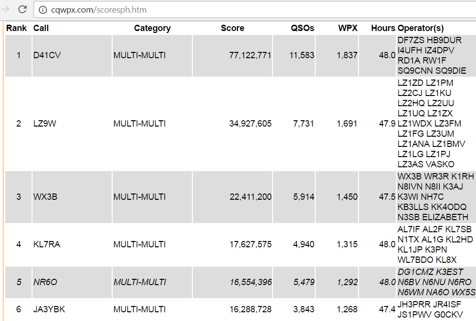 На данный момент соревнования отсужены, и результаты опубликованы на официальном сайте. Как и планировал Фабио – у нас получилось первое место с большим отрывом! Публикую скриншот результатов с официального сайта http://cqwpx.comВложение: