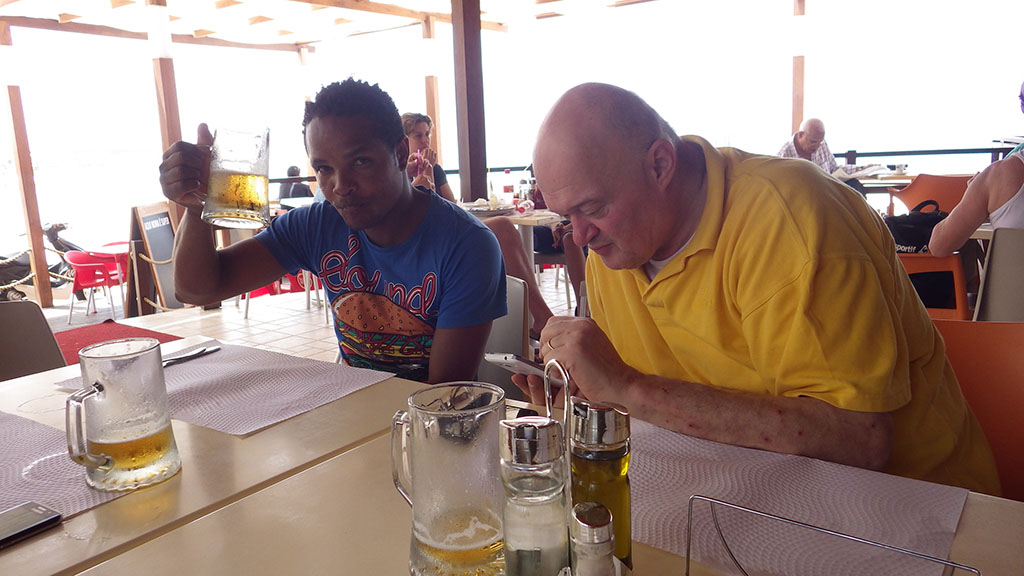 Делаем фото на память с Карлосом, а он у нас интересуется, не привезли ли мы случайно для него сёмги и черного хлеба. Оказывается Карлос большой любитель сёмги (сёмгу иногда привозят специально для него прибалты), чёрный хлеб на острове тоже не достать, поэтому Карлос считает его деликатесом. Вложение: